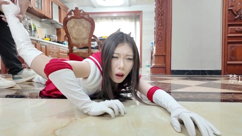 一天,女主因为大雨虚弱,避雨时候碰见员工。员工看见女主虚弱的样子联想起了美少女战士。恶从胆边生,开始折磨女主。女主挣脱开,变身为美少女战士,打得员工屁滚尿流逃走,女战士追击。被员工用水枪击倒,不停的呲水女战士虚弱哀嚎。员工折磨女战士击腹掰腿踩踏脱靴等。折磨过程中丝袜也被撕烂,女战士陷入绝境。员工拽起女战士扔进浴室,喷头呲女战士。女战士能量核心进水,倒下。最后,女主向其他女战士求救,昏死过去。