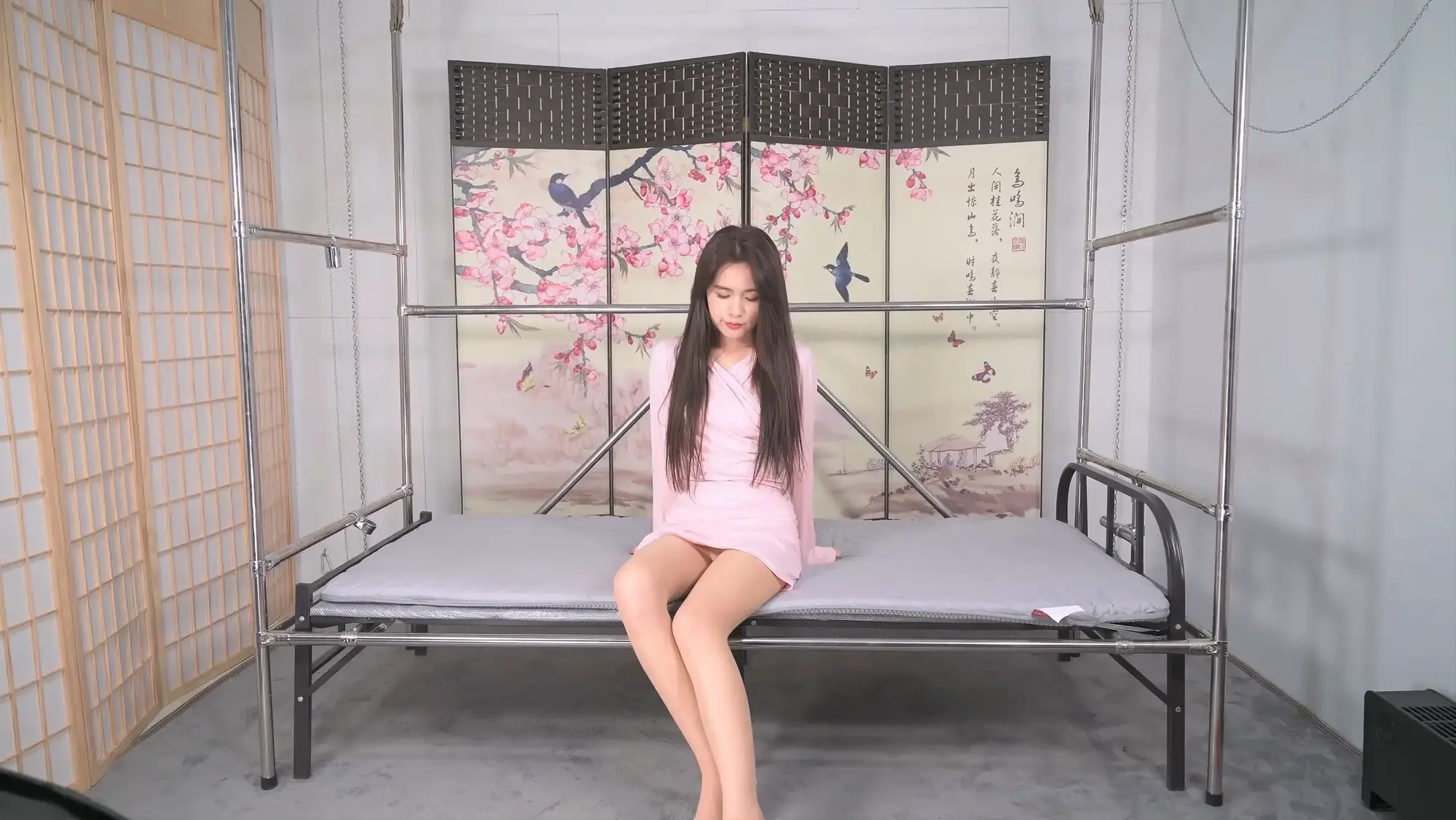 言妍的腿可谓标准的美腿,上下的粗细比例以及腿型、线条、质感与整体气质的都是那么的匀称和谐,增一分则太长,减一分则太短,粗一分则失之丰腴,细一分则失之单薄,而当她穿上高跟,犹如锦上添花,更增添了几分令人心动的魅力,最令人心悸的是高跟里的足弓拱起形成的那分空间,我称之为“弓悬领域”,这分由足弓拱起而形成的小小空间,正是高跟鞋美学中的点睛之笔,言妍的美脚把她完美演绎,它打破了鞋面与脚底之间的沉闷,创造出光影变幻的层次,让观者的目光有了停泊和想象的余地。这个小小空间,让整体造型从“包裹”走向了“塑造”,赋予了无限悸动的想象,我忍不住用手指去扣去探索,想用最敏感的神经去链接现实与想象,伴随着美女的娇嗔和微微挣扎扭动,那是被触动后最本能的涟漪,此刻与她微微绷紧的身体曲线遥相呼应,共同构成想象与束缚与现实的绝妙轮回。为了这美腿的极致体现,特意把另一条腿高高吊起,展现了一道从脚踝到大腿根的完美的抛物线,她不自主的勾动脚尖,让被迫拉伸的玉腿灵动而性感。沐小雨女王的加入,仿佛也受了眼前曼妙身姿的影响,让气氛变得暧昧起来,我们互相配合着,每当她用工具去刺激言妍的身体,我便按住她扭动的肢体,用一种不容置疑却又小心翼翼的力量,将她牢牢固定在我的手中,是在告诉她:在我们手里,你没有退路,只能面对!这一次次小小的博弈,不在于让她无法动弹,而在于让她最终心甘情愿地放弃抵抗,随着娇嗔和反抗渐渐无力,沐小雨女王拥着言妍入眠,她们依偎的姿态,宛如一阕未完的古典乐章。