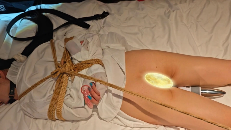 女m被剪掉裙子和衣服过后只剩下一层薄薄的肉丝和内裤,然后继续放上玩具大宝贝固定捆绑在酒店的架子上面。然后离开,因为她希望独自享受快乐,出去洗个脚回来发现她已经尿了一地,容光焕发的s继续开始他的调教,舔舔更健康,振动假阳具固定插入,深度喉咙,驷马后入。