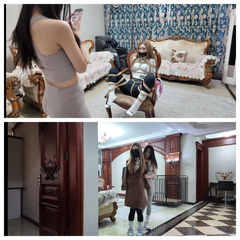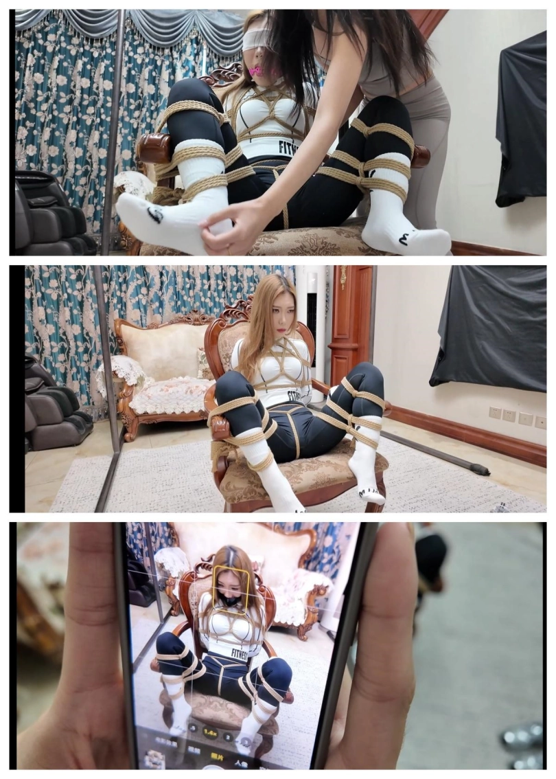 剧情介绍:第四集故事开头,柠琪从房间伸个懒腰走出来,走向被五花大绑蟹缚捆绑固定在椅子上的芷溪,芷溪此时处于懵懵状态,毕竟被蒙眼,堵嘴,塞耳朵感官都封闭了!(第四部的开头是接的不劳而获之大绑特绑第二部)柠琪走到芷溪面前,对着她的白袜脚心疯狂挠,弄得芷溪呜呜呜的叫着,还一边说着羞辱芷溪的话语,芷溪呜呜呜着就带着哭腔了,随后柠琪表示只要芷溪向她道歉,她就帮芷溪松绑,芷溪呜呜呜含糊不清的表示了同意,于是柠琪就解开了她的嘴巴,和蒙眼布并取出了耳塞,芷溪马上对柠琪道歉了并恳请柠琪帮她松绑,柠琪表示接受芷溪的道歉,刚准备给他松绑,手机响起,雨诺被结结实实捆绑的照片发来并附带了坏蛋的一句话:你马上把那个小贱人的女儿给我们绑来,不然的话,你就见不到你的队友了!这话算是把柠琪给唬住了,她打消了给芷溪松绑的念头,不顾芷溪的说话,再次将芷溪嘴巴堵上,用一块粉色化妆棉将芷溪嘴巴塞得满满当当的,随后又用三张黑色胶带将芷溪嘴巴封上,确保她不好大喊大叫后,柠琪又给芷溪重新捆绑上,然后给芷溪换上了大衣,戴上口罩和墨镜,打扮成伪装拘束的样子后带了出门!