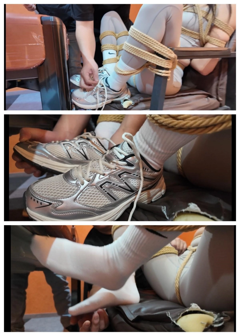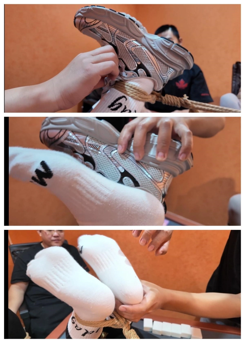 本剧最精彩部分就在这里,我就简要这段,各位支持的同好慢慢欣赏吧!这段内容有:特写解开鞋带,慢慢扒下鞋子然后露出白袜子的特写;有对三女都进行挠脚心,腰等敏感部位,同好可感受三美女挣扎并呜呜呜;还有二坏蛋变着花样的玩弄二女保镖的场景!