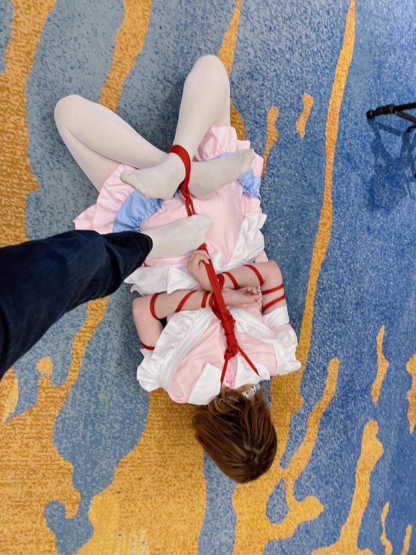 本期突出一个扎实。对穿着白丝女仆装的小妹妹当然要绑的结结实实啦~上半身采用了最扎实的传统五花,手臂上的肉被绳子勒成一截一截的正是五花扎实的魅力。