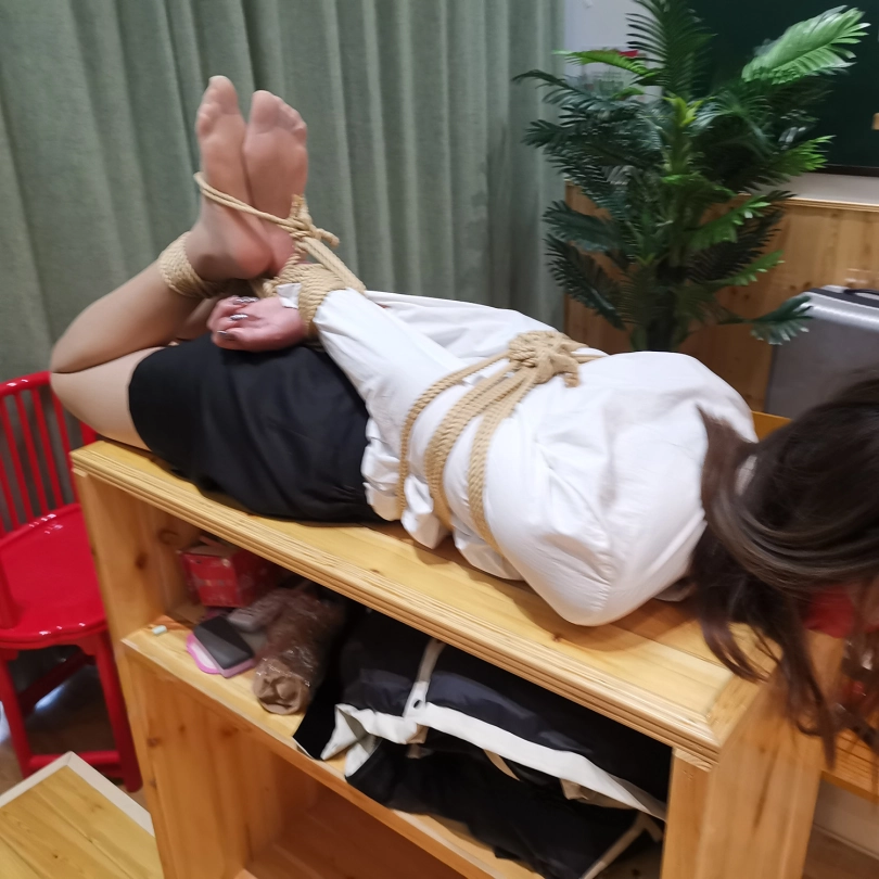 老师双腿交叉捆绑在讲台上,并用连裤袜勒住嘴,这个姿势让老师难受的不断挣扎;接下来老师又被学生驷马绑在讲桌上,并不断的虐足玩弄。。。