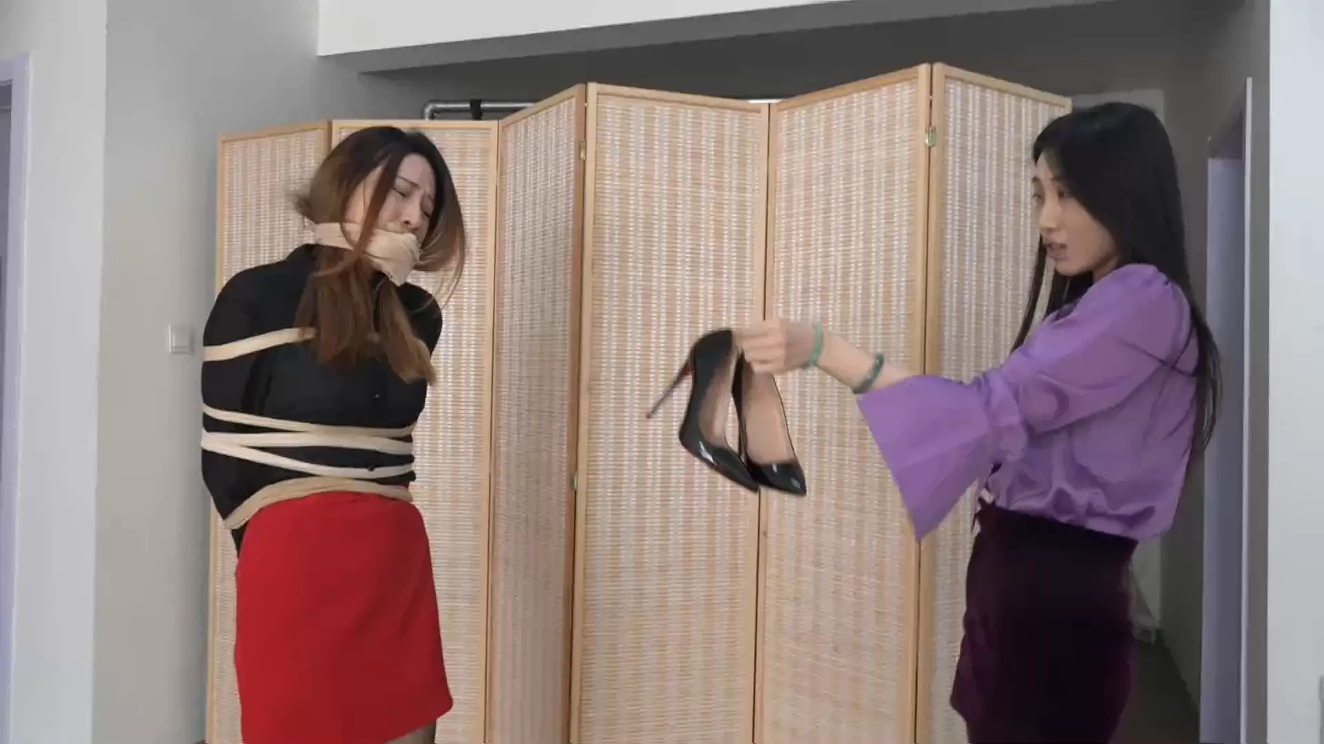 看点:女女、美腿、包臀裙、堵嘴、调教、黑丝、高跟鞋、打斗、捂晕、剧情、丝袜蒙头