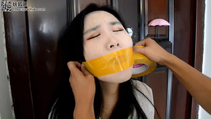 封嘴劫二。(特点封嘴红唇,还有丝袜美腿,以及呜咽声和挣扎)(多给嘴巴和丝袜特写,念诗的时候要相对大声一点,对比前作可以适当大声一些,念诗的镜头为电脑界面和现实穿插)沈晨经历封嘴劫难后,被密不透风的丝袜蒙住眼鼻,生死未卜。与此同时闺蜜,挂断和沈晨的视频电话之后,还在嘟囔着:装什么装,半天不说话。却不知道劫匪急冲冲的离开沈晨家,居然是在翻动沈晨的手机后,发现了闺蜜女主的地址。劫匪溜到女主家里,看到女主丝袜美腿,以及她的性感裙子,居然有些按奈不住。开始装扮女主穿着两双肉色裤袜。女主正在对着电脑开直播。(直播界面就用单机直播间或者你随意操作)女主起身去喝水,却被一把刀抵住腰部(刀具也别太真,之前封嘴劫一感觉有点危险。)女主:啊...你..是谁?劫匪:不想死就乖乖听话!女主:啊....你这是违法犯罪!劫匪:我最讨厌别人叽叽喳喳了!劫匪站在女主身后,挟持着女主,拿出透明胶带,“自己封上!”女主撕开胶带后一犹豫,却直接丢掉,“变态!”劫匪亮出刀:要么让我一刀一刀活剐了你,要么就张嘴把自己的臭嘴堵上。劫匪:把鞋脱了,丝袜脱下来!女主:你马上离开,否则我报警。劫匪:再喊我杀了你!(催促她脱)女主拖了鞋,脱下丝袜。女主十分抗拒,慢慢举起丝袜,塞入嘴里。劫匪手上用力,刀碰到女主大腿。女主焦急而又不情愿的把丝袜抵在嘴边,劫匪顺便推了一下女主的手,女主手一送,把丝袜一下送入嘴里,填满口腔。女主发出干呕声,显然是丝袜太胀嘴。劫匪翻动背包发现了丝袜,当成绳子。女主的手被丝袜正手绑住,手掌合住套上一双丝袜(短丝或者其他),或者静电胶布(不一会就要挣脱开的),手肘被绑在腰上,所以手的姿势受限制。而劫匪却拉开胶带作势封住女主的嘴,女主往后向缩,挣扎着跑完门边。女主一边走:呕..呜呜...女主被追上,被一把拉住按在门边,胶带哗啦一声拉开,印在女主的红唇上。女主发出一声不甘的叫声,发出诱人的呜咽。劫匪:你还在做直播呢,继续播!女主心道这是一个机会,还以为劫匪是傻子,凑到直播间前,美腿被丝袜绑住坐在电脑前。可以加旁白。呜呜的大喊起来,发出含糊不清的救命二字。(可以稍微大声一点)他的刀在她的丝袜美腿上不断晃悠,手也不断划过女主的美腿,半分钟后,劫匪却直接离开这里,去卧室搜索钱财。女主:呜呜呜...我被封嘴了..救我(声音发出清楚程度为百分之五十,体现女主的焦急)直播间的人并没有发现异常。劫匪离开之前笑了笑,低声道:这可是特制,没人看得出你的异常。女主还以为能得救,听到是特制胶带之后,在电脑前就变得极其抗拒,不断发出模糊的求救声。劫匪没有管他在屋子里搜索起来,找到了一些丝袜。(劫匪拿了银行卡,准备撕票,可以加台词)女主见到劫匪手里的银行卡和刀吓了一跳,急忙道:“呜呜...别...杀我...”害怕劫匪听不清,急忙拉过劫匪手中自己的手机,用手在手机上的微信上打出,“别杀我,我都听你的!”(这正是和沈晨的聊天框,之后又趁着劫匪不注意发出了消息)劫匪拿开女主的手机,拿出一个稿件:还敢抢手机,想去报警?嘴被封上说话,倒是很好听,把这个念完我就放了你!女主不断摇头,但看到刀,又不得不配合。(念诗时劫匪不要面)稿件上是一段古诗:大江东去,浪淘尽,千古风流人物。(对着直播界面)故垒西边,人道是,三国周郎赤壁。乱石穿空,惊涛拍岸,卷起千堆雪。江山如画,一时多少豪杰。(女主时不时抬起头害怕的看了看镜头)遥想公瑾当年,小乔初嫁了,雄姿英发。羽扇纶巾,谈笑间,樯橹灰飞烟灭。故国神游,多情应笑我,早生华发。人生如梦,一尊还酹江月。女主费力地努努嘴,发出呜呜声(稍微大声点)。直播界面的人不明白主播在干嘛。女主坐在电脑前,看着一旁的稿子念了出来,透过丝袜和胶带发出含糊却偶尔清晰的声音。劫匪往屋内走去,不知道要干嘛。女主借机急忙用尽全力腾出手来,撕下来胶带,本想在直播间大声求救,却忘记了堵住嘴巴的丝袜。(糟了嘴麻了,没办法张开!)旁白女主焦急的环顾四周,将黄色胶带撕下一截,封住嘴巴(补上口红,要在黄色胶带封嘴后,能看到漂亮的红唇)女主对着电脑屏幕呜呜大叫,指了指嘴把,随即怒动嘴巴,示意自己被封嘴。可惜直播间的人还来不及发现这一变故,女主的小腿就被人握住。女主:呜呜呜...劫匪蹲在一边:穿上这条丝袜,不然我杀了你!女主 穿上另一双白色中筒丝袜,女主被拉到一旁。直播间人本来就少,加上女主网络不好,刚才封嘴的样子没被人看到。(女主穿了丝袜后被劫匪将手反绑,直播间角度看不到手被绑住)劫匪将女主拉到一边坐下,撕下一截胶带贴在女主鼻子上,女主挣扎一会。劫匪:还敢不敢乱来?女主:呜呜呜...(怒骂状态)(女主不断搓动丝袜美腿,一只脚穿鞋一只脚不穿,然后踢掉鞋子,)劫匪:性子很烈嘛,我也不为难你,再配合我念一段诗,我就放了你!(女主这时候换装成那个水手服装,下面不变,穿肉丝加小腿白丝袜。鞋子为带扣小白鞋,中途一只脚掉鞋,露出白丝)劫匪在黄色胶带封嘴之外,还加上一层肉色丝袜蒙住住女主的嘴(蒙一层吧,要能模糊看清黄色胶带封住的嘴),。女主犹豫一下,还是点头答应。(念诗的时候劫匪不要出现在画面之中)很为难的继续回到直播界前。“ 轻轻的我走了,正如我轻轻的来;  我轻轻的招手,作别西天的云彩。  那河畔的金柳,是夕阳中的新娘;  波光里的艳影,在我的心头荡漾。  