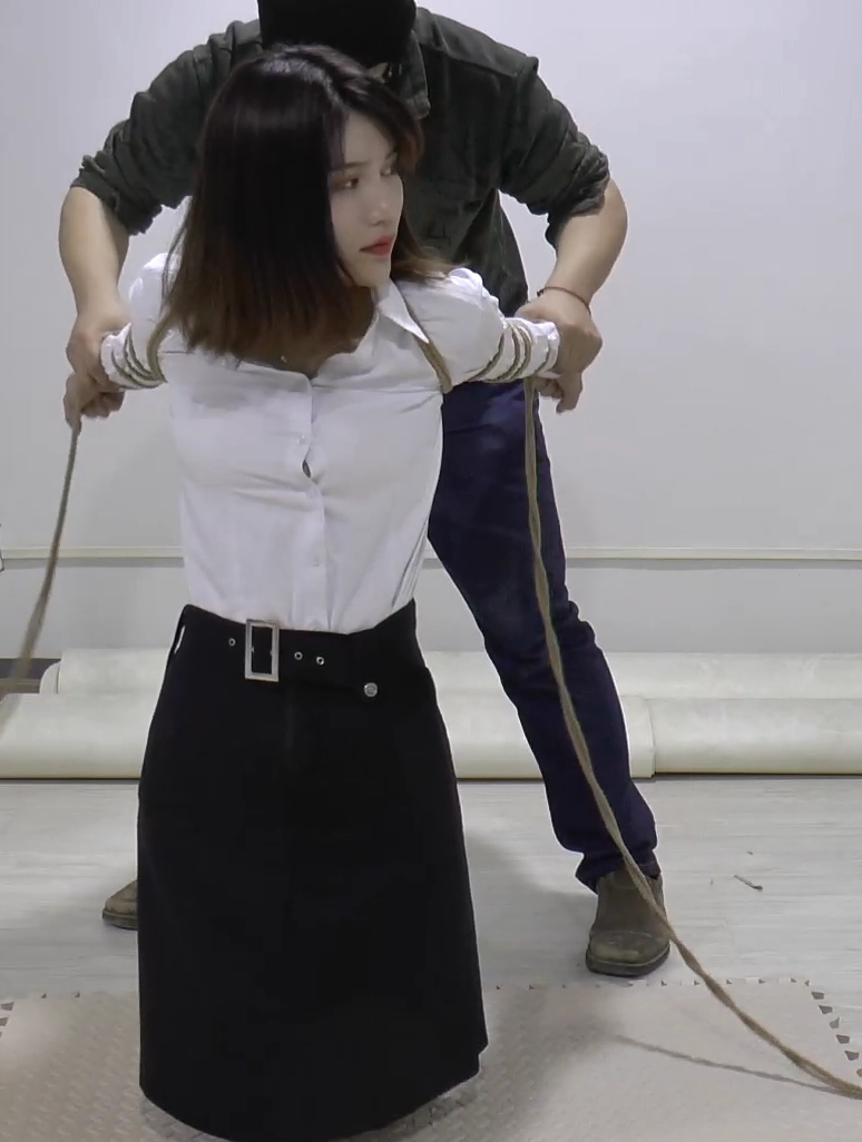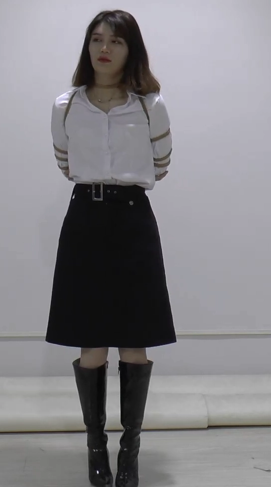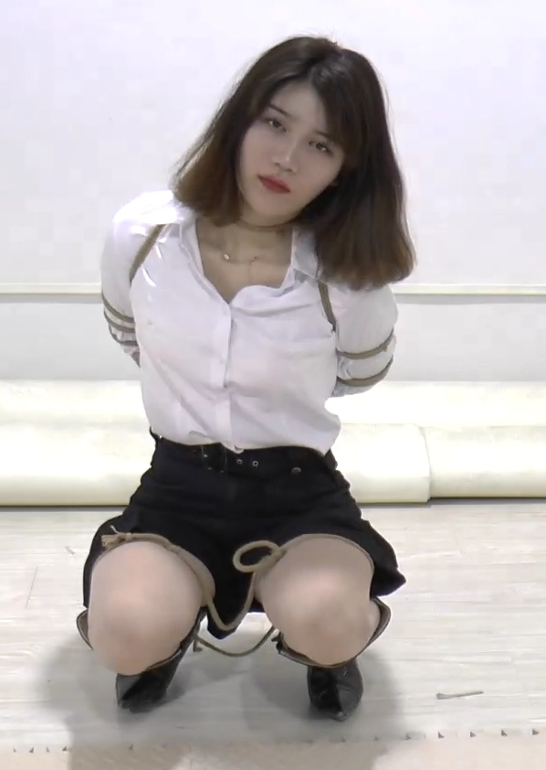 网红美女林萌。颜值绝对没的说。迷离的眼神,性感的大长腿,穿上白衬衣,黑裙子,长筒靴子,再配上五花大绑,太漂亮了。