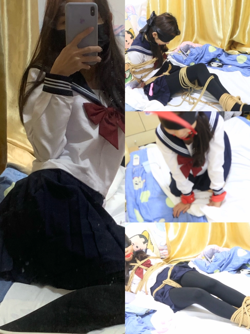 【得意客】约绑黑丝水手服真实大学生妹子 真实捆绑 首次震动感受