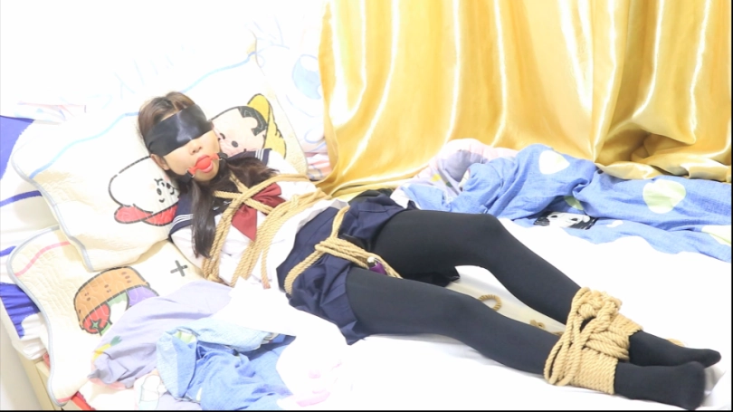 JK 为了应季 没有选择太薄的丝袜 同时妹子想体验真实绑架,没有用特别专业绑法,甚至有点松可以挣扎一下