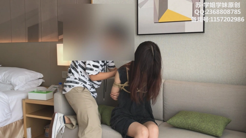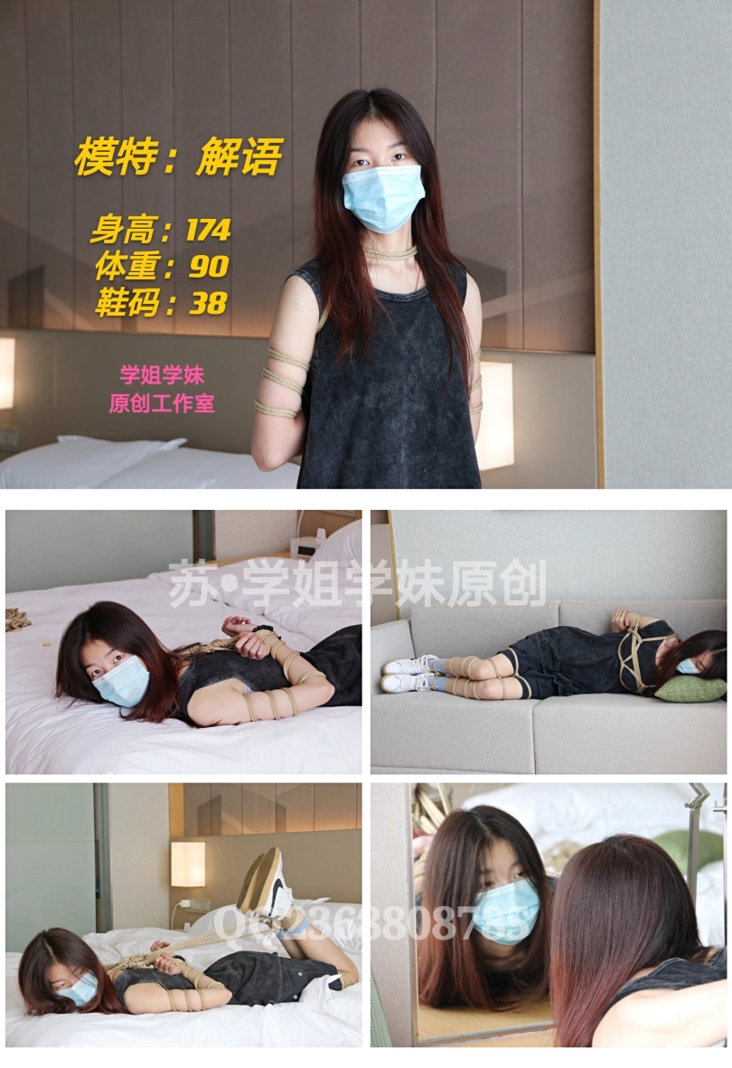 解语对我们这个小作坊来说有一个特殊的身份,因为严格来讲,她是我招到的第一个模特,只是在试镜之后一直处于半退圈状态,直到前不久才复出,所以现在才将她的试镜片发上来,为后续的作品做个铺垫。招到解语的那天,我在当地各大高校的兼职群里发了一天的广告,经历了数十次被骂变态和秒删之后,到了晚上心灰意冷的我完全不抱希望的发了最后一次广告,就招到了解语。解语以前做过模特,看完她发来的照片,我以为身高174却只有90斤的她一定是一个非常奔放狂野的人,结果见了面却发现她是一个非常腼腆的温柔女孩,颇具南方女子的温婉气质。那天酒店的光线非常好,麻绳缠绕在解语纤细的胳膊和腿上,让她那雪白的肌肤显得格外诱人,白色的耐克板鞋和背心短裤更是让她在柔美中透着一丝酷酷的感觉。酒店房间里有一面大镜子,解语一边被绑,一边用好奇的眼神看着镜子里的自己,腿绑上之前,还会趁我找绳子的间隙不停活动带上脚镣的脚,感受被束缚的行走。在TK环节,我问她你能接受挠痒痒吗,她竟然无意间说出脚还好但是腰上痒痒肉更多,结果便是遭到了更疯狂的蹂躏……软妹纸解语的更多曼妙表现,等你在片中与她邂逅。