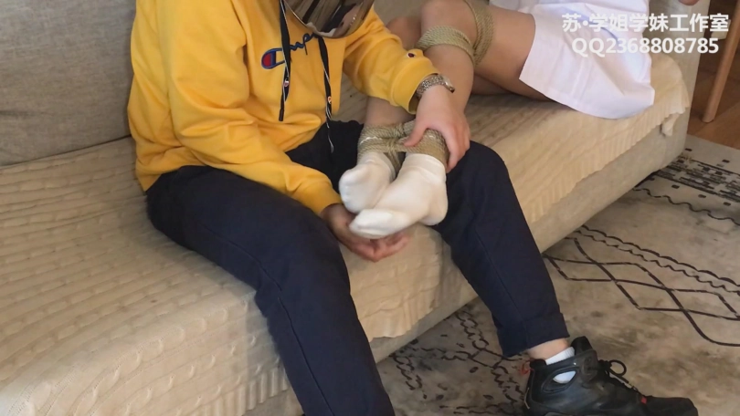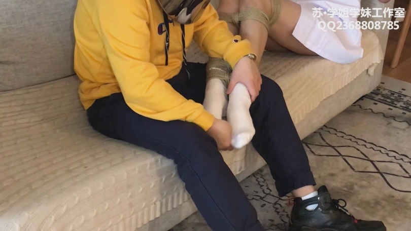 解语可以说是本工作室里最怕痒的模特了,之前试镜的时候,轻轻碰一下脚心就会痒的浑身抽搐,腰上的部分则更为敏感了。我是一个体谅员工的老板(确实是),在以前的拍摄中,知道解语怕痒,我便每次都浅尝辄止,从未下过死手。但这次不一样了,定拍客户点名要看解语的TK片。我们学姐学妹工作室的宗旨是客户就是上帝,客户的要求就是圣旨~既然客户提出了要求,就必须认真严格执行!因而在这个片子里,解语真的被挠掺了:先是穿着花边白袜被要求绑腿蹦跳,而后腿被我抱起来,放到我的腿上挠,再绑成驷马疯狂挠,然后换上黑丝,一样的内容再来一遍。50分钟的拍摄除了上绑松绑,剩下的时间全都在挠。在此过程中,解语被挠的实在受不了的时候,会苦苦哀求放开她,甚至会喊救命。温柔的解语妹妹求饶起来,真的是别有一番风味。。