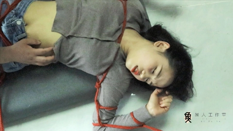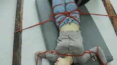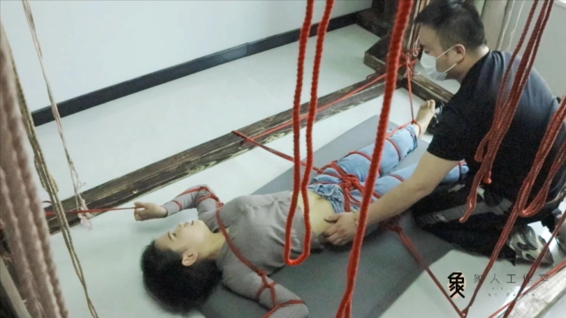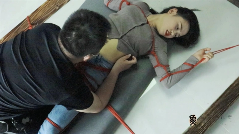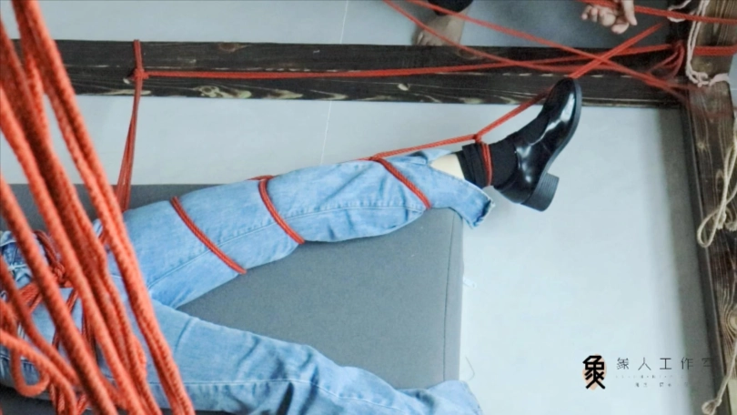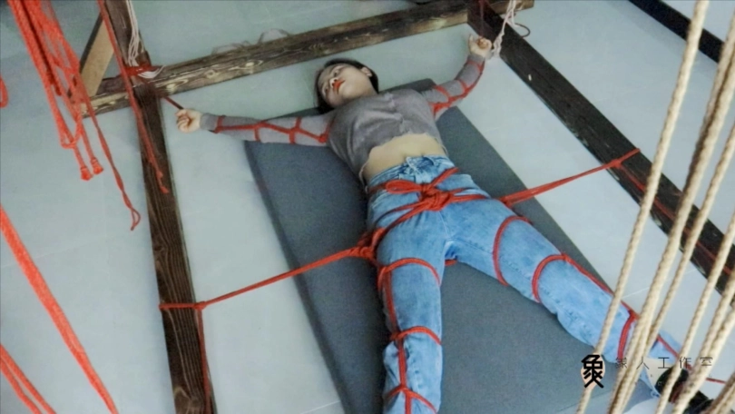 【象人】露脸牛仔裤,大字型捆绑拘束,痴汉挠痒占小便宜