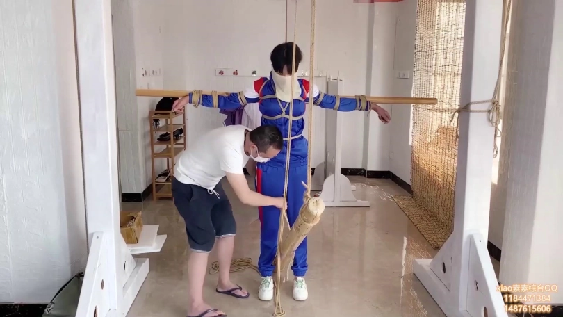第五集: 小素素被灌水后 木棍固定吊起脚尖顶地后,再用一更固定在下面让小素素只能脚尖顶地 放置bangbang后gc