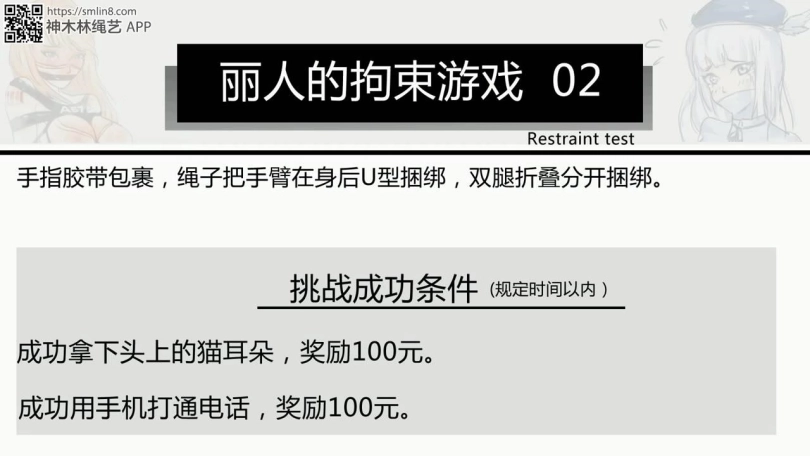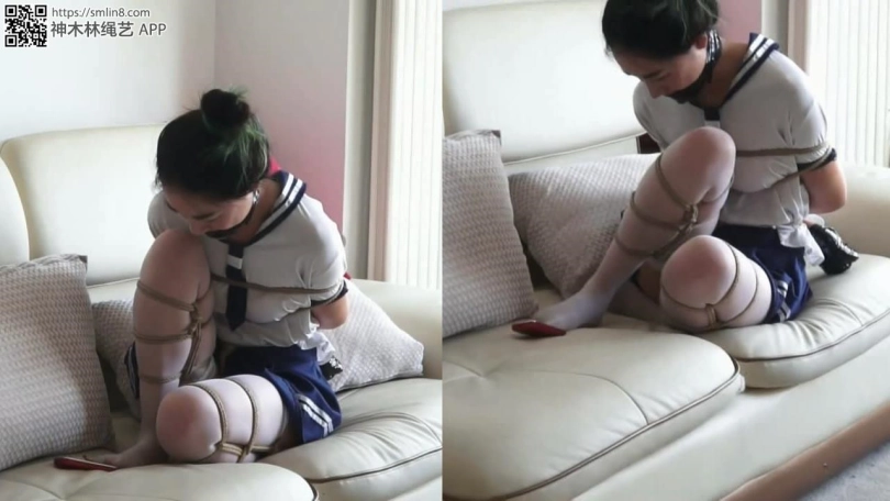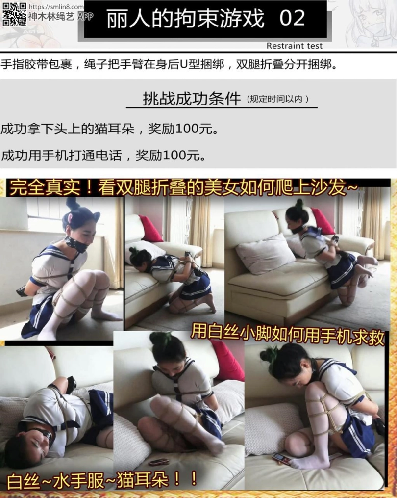 【逍遥】丽人的拘束游戏-2!写实系捆绑游戏!水手服猫耳白丝美女双腿折叠捆绑!要完成各种游戏挑战!折叠双腿还要爬上沙发~白丝脚趾拨打电话!千万不要错过~