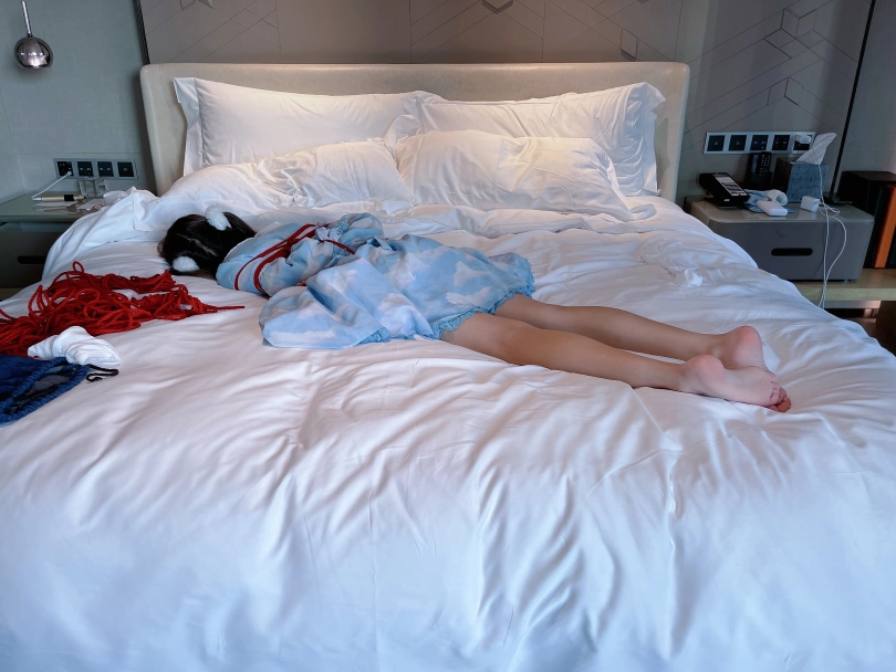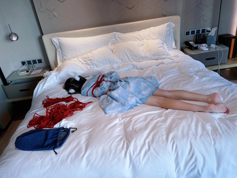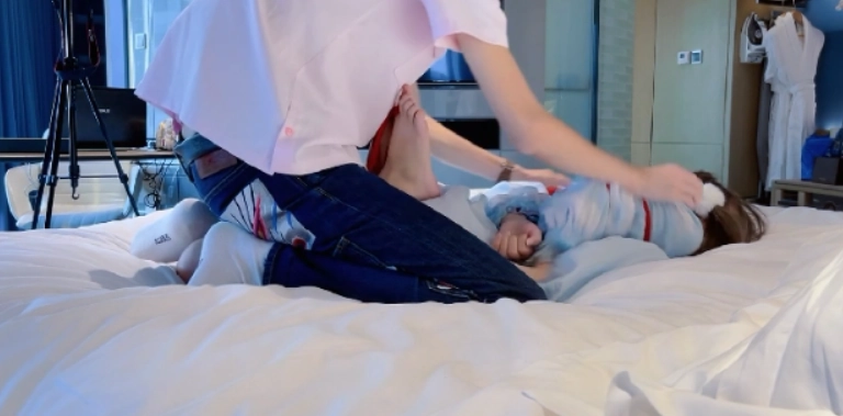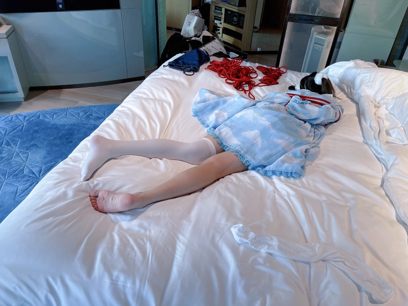 服装改为Lolita,脚趾依然紧紧绑起来并且脚心朝天骑在胯下,用两只手疯狂的折磨茶茶的嫩脚心。可怜的小脚丫被绑着不说,还被压在胯下动弹不得,只能绝望的在胯下扭动挣扎~