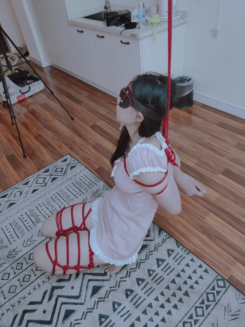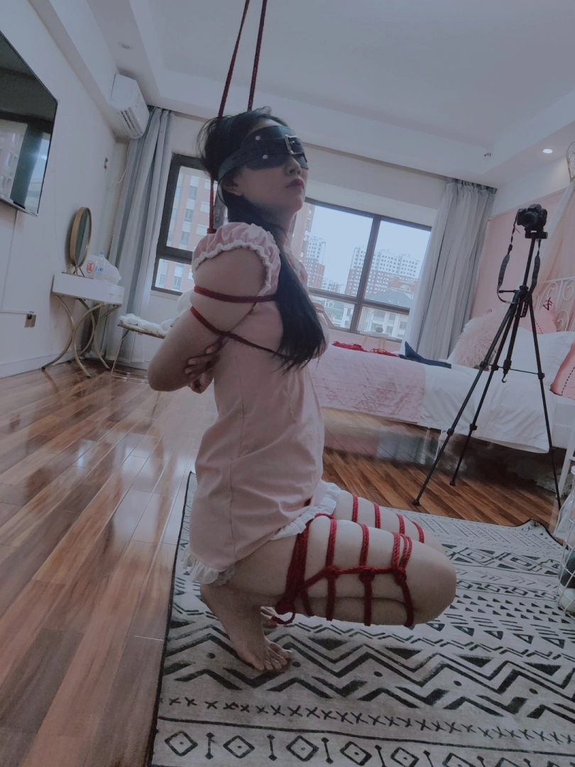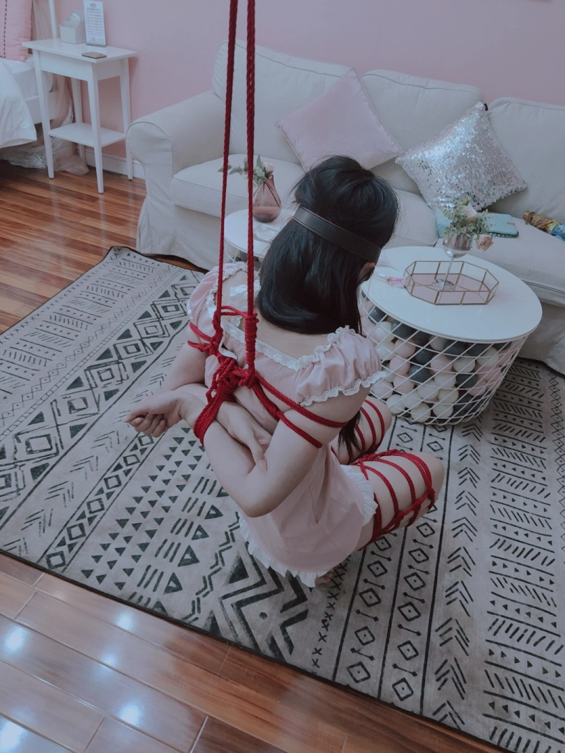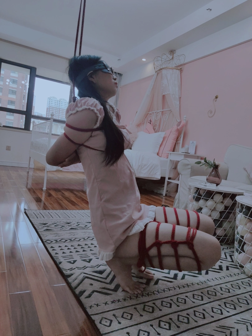 把长腿少女的双腿折叠捆绑,让少女坐不下去也站不起来。然后吊高她的双臂,让少女只能在两种痛苦中作出选择:要么踮起脚尖,让脚尖承受身体的全部体重以此减缓胳膊的压力,要么选择放下脚丫,让胳膊被狠狠吊起...