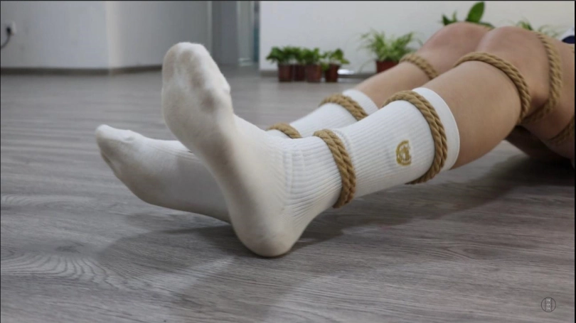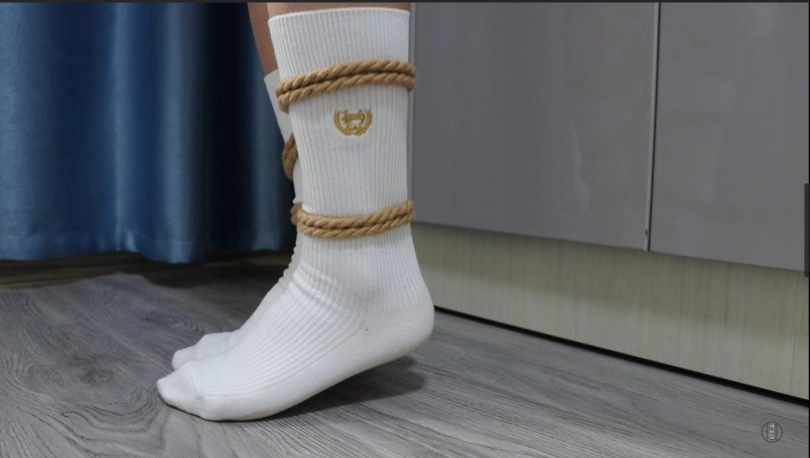 刚刚醒来的珊珊满是疑惑,但很快,疑惑便被打消了。答案只有一个:肯定是许斌干的好事。珊珊挣扎着身上的绳子,背后的双手摸不到绳结,却将股绳提拉的更紧;蹭动的双腿互相摩挲,穿着白色中筒袜的小巧玉足脚趾蜷曲,却丝毫无法挣开半分。