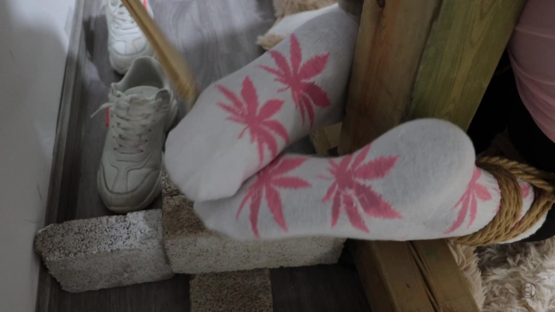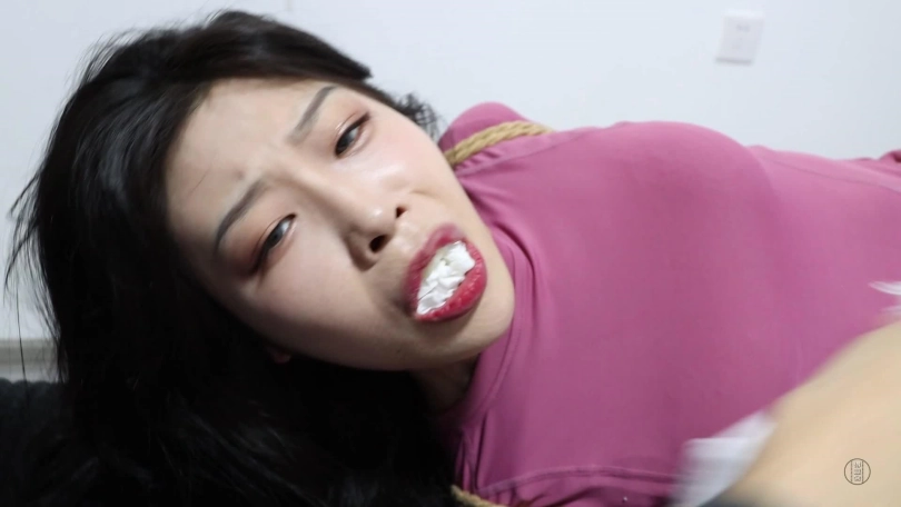 这次是医生遭遇的续集。上集说到医生被病患的男友绑架囚禁在卧室里,她奋力的挣扎却无济于事,一会男主拿着水回来,给她换了成直臂的驷马紧缚后,撕开她嘴里的胶布,取出黄色的棉袜子,给女医生喝水。喝完后,又将餐巾纸塞入女医生口中,接着用打了结的毛巾勒住了她的嘴巴,男主对女医生说:这水里我可是放了利尿剂的,你要能憋住不尿出来我就放了你。女医生听过挣扎剧烈起来并发出呜呜呜声音。这是男主可不不会让她休息,又拿来了鞭子,抽打她的屁股,脚心,腰还给她翻个身,抽打她的裆部。不一会,女医生就尿了一床,裤子床单都湿了,男主拿来毛巾擦拭床单,并说着:你是狗吧,尿这么多。女医生含糊不清的说:卑鄙,呜呜呜。男主愤怒地用擦了尿的毛巾捂住女主的口鼻,女主挣扎却一点用都没有,一会就晕了过去,慢慢闭上了眼睛。男主说:可不能这么放了你,我得给你绑更紧点。镜头一转,女主被紧紧的绑在柱子上,男主捏她脸颊,拍她脸把她拍醒,然后将她尿湿的原味内裤塞到她的嘴巴里,接着外面用口球堵上,堵完嘴后,男主还给女主带了项圈和狗链将她拴在柱子上,接着用鞭子抽打她全身,女主只能呜呜呜。一会,男主还觉得不过瘾,解开女主口球,掏出原味内裤后,又用绿色的厚袜子塞到她的嘴里,外面用黑色胶带缠绕上,将头手和柱子紧紧的绑在一起,然后取来毛刷,刷她的脸颊,腋下,腰,胸,肚子,女主实在受不了,含糊不清地问到:只要你放了我,让我做什么都可以。就这样他又中了男主的计,男主对她说:这可是你说的,做什么都可以。女主:呜呜呜,是的。接着男主说:我女朋友最喜欢狗了,你就做我们的宠物狗吧。哈哈哈。说完,她就脱了女主的鞋子,用毛刷挠她脚心,女主表情难受,要哭了。接下来,女主四肢被绳子绑成犬缚,脸上被带着鼻勾,口球,项圈被男主牵着走,男主又鞭打她,逼迫她让她学会如何像狗一样爬,对女主肉体和精神上的折磨后,他还是不打算放过她,男主让女主爬到柱子边,然后让她躺下,用狗链将女主栓在柱子上,然后又用胶带缠绕她的手指,让她屈辱的姿势躺在地上挣扎。