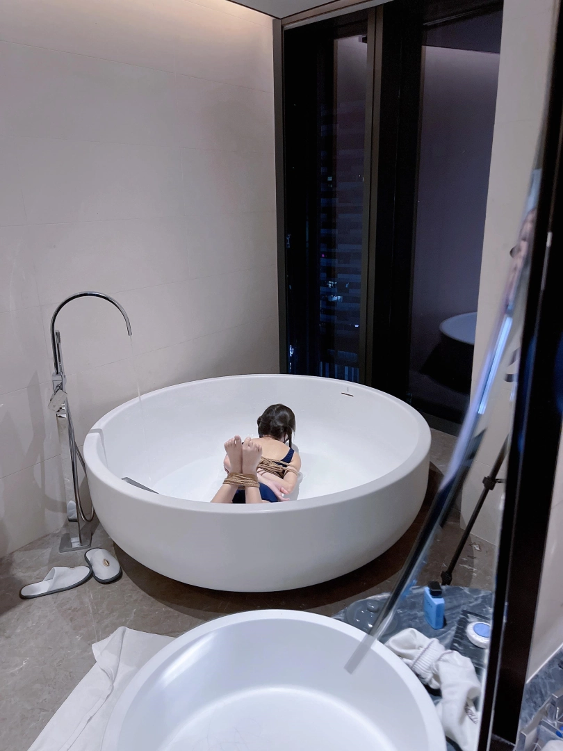 这次搞了个大大大大浴缸,打算把茶茶驷马绑好之后放水,让茶茶充分体验一下什么叫绝望。 真的,茶茶真的是最极品的白幼瘦,又娇小又白嫩,皮肤白皙的仿佛能捏出水来,穿着死库水的时候两条光溜溜的大白腿就漏在外面,白嫩而不失婴儿肥的小脚丫配上纤瘦的身材,真的是极品中的极品啊!茶茶的小脚真的是太嫩太可爱了! 可怜的茶茶被驷马丢进大浴缸,麻绳浸水后紧紧勒进皮肤里,最后我亲手去解都解不开,只能用剪刀剪断。。 随着水流一点点没过茶茶的身体,茶茶真的害怕了,只能拼命仰起小脑袋才能不被水呛到。而我却在此时假装离开,茶茶在死亡的恐惧下真的崩溃了,拼命呼唤。