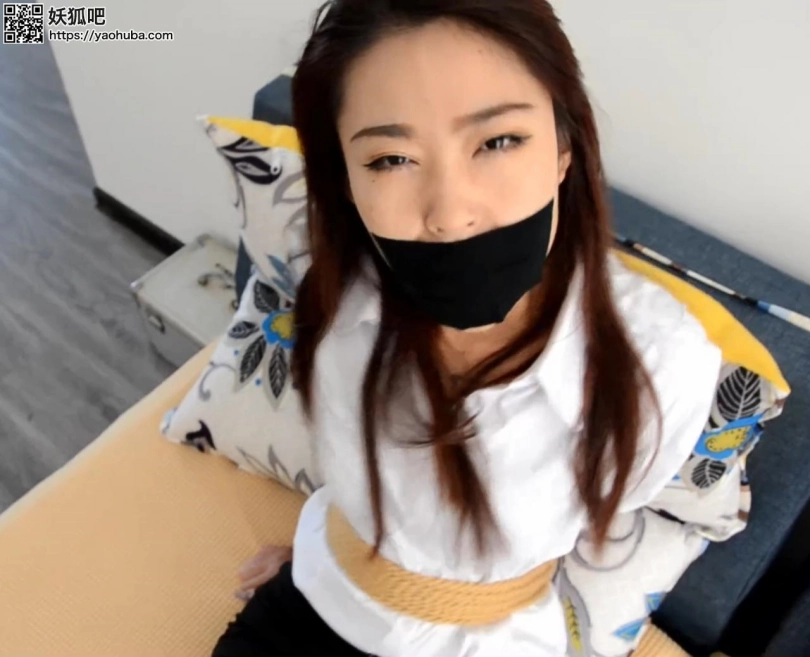 瑾萱被迷晕捆绑,黑色、黄色、透明各色胶带封嘴,丝袜塞嘴,各种角度挣扎
