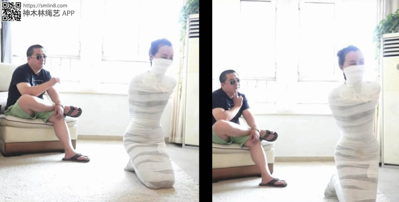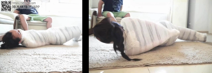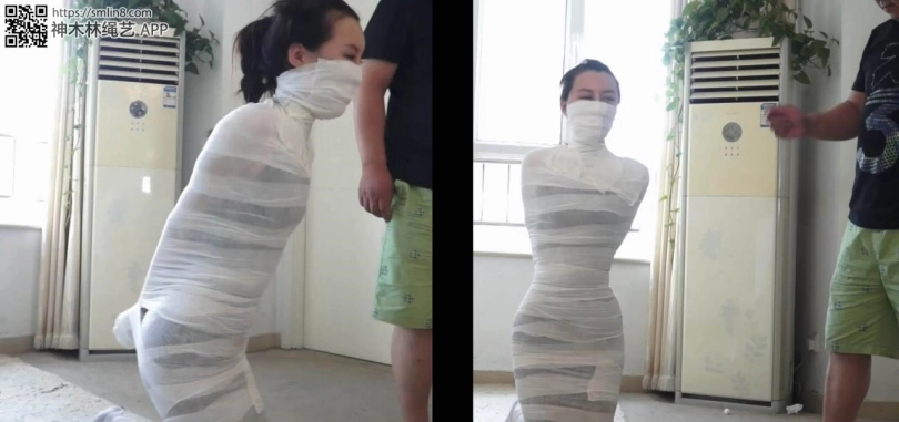 美女在被捆绑的情况下,被用衣服遮挡身体,打扮的和没被捆绑一样,这样其他人在她面前却囚禁不得,求救不成被富豪惩罚,捆绑成洁白的木乃伊在地上无奈蠕动,强制挠丝袜脚,在木乃伊的情况下被强制跳舞!绝对精彩!
