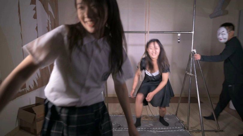 长腿清纯小妹初次体验铁架镣铐,可能是链子留的太短了,有点硌手,但能让她最大伸展。然后让她去铐姐姐,就是这个决定埋下了她们逃脱的隐患,她学会了这种铐子的解锁方法,铐的过程中弄掉了一把小钥匙,这是第二个隐患,当我把小妹双手吊绑的架子上的时候,我竟然系了一个活扣。当我捆好后,去抽了根烟,准备回来欣赏欣赏,让她们在架子上好好待一会的时候,出现了搞笑的一幕。