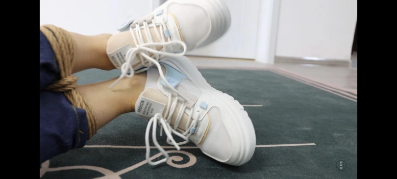 小丁将珊珊抓回来后将她绑成超紧的股绳驷马。捡回珊珊的鞋子让他闻了闻,然后开始玩弄珊珊的白袜脚,玩了一会之后将珊珊脚上的袜子脱下,替换掉珊珊嘴里的袜子,然后再用胶带封好。然后开始玩弄珊珊的裸足玩了一会小丁累了,给珊珊重新穿上了一双白袜后回屋休息。