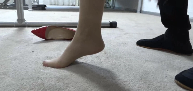调查人员将柳洋带走之后将她缚在椅子上进行了一顿惩罚之后,随后便将她吊在了架子上面。高高举起她的双手,用绳索捆绑起来,上半身用着龟甲缚捆绑好。(其实我感觉这集的捆绑方式挺好看的,举起的双手被吊起来,最后还将高跟鞋脱掉踮起脚被吊着)随后再次为她戴上一个圆形口环,便留下她一个人独自在屋内挣扎。因为被高高吊起,双手一点都无法进行活动,只能依靠穿着高跟鞋的玉足勉强保持平衡,而被戴上口环的嘴里更是忍不住流出了口水。让本就喜欢捆绑的她此时觉得有些享受起来,完全忘记了对她进行的调查,不禁心想没想到这调查局的方式这么特别。正当她还在享受的时候这时调查人员走了进来,手上拿着一根鞭子,看来是要对她进行拷问了,调查人员用着皮鞭狠狠的抽在了柳洋那性感的臀部。由于被戴上了眼罩,柳洋丝毫感觉不到有人靠近,直到臀部传来被鞭打的刺痛感才发现原来有人靠近。刺痛的感觉让她大声的叫了起来,不断的流出口水嘴里呜呜的叫着。调查人员看着她玉足上的高跟鞋,似乎觉得穿着鞋子还是过于舒服了,便将她脚上的高跟鞋也给脱掉,让她踮起脚尖吊缚起来。失去了鞋子的支撑点,柳洋唯一能依靠的只有她的脚尖了,瞬间让她变得难受起来,还要艰受调查人员的鞭打,注定是一段漫长的时间,夜已深,被吊在架子下的柳洋终究是失去了所有的权利,等待她的将会是什么了~