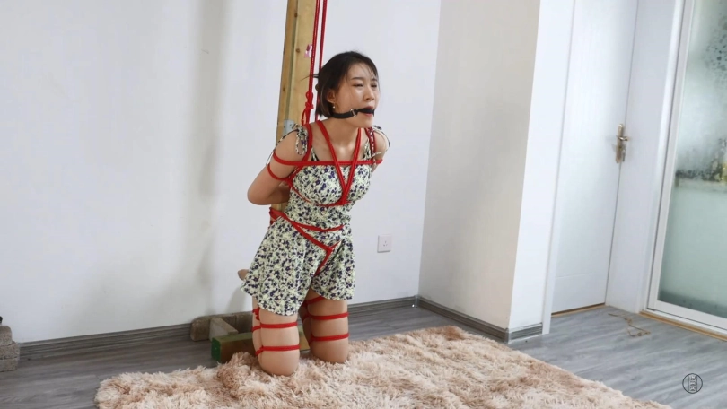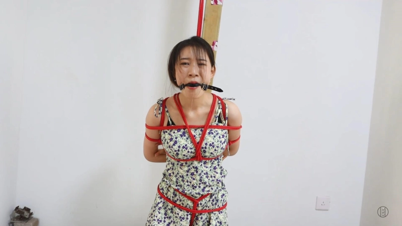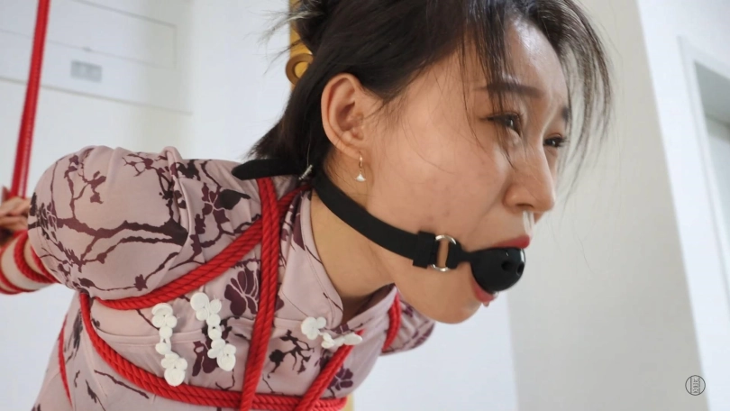 新模思思,长得很御姐,穿上紧身旗袍之后身材显得凹凸有致。把她直臂捆绑,日式胸缚把好身材都勒出来,后手吊胸前再用绳子牵拉强迫弯腰,思思穿着高跟鞋只能努力保持平衡,口球堵着口水很快就流了下来。之后把她双腿折叠捆绑训练跪姿,等她脚跪麻了就在后面用绳子吊起来,让她膝盖顶地跪的更难受了。