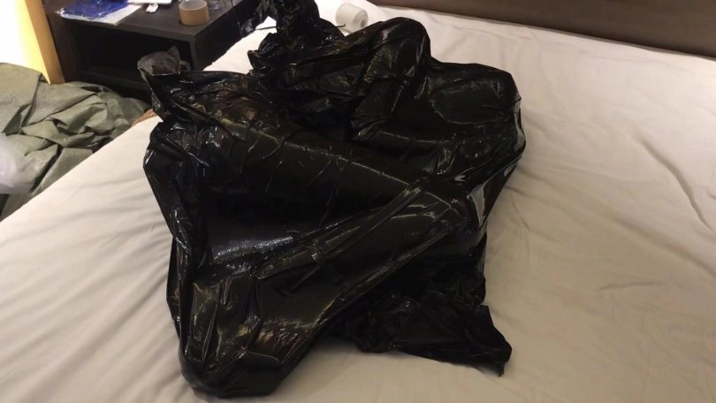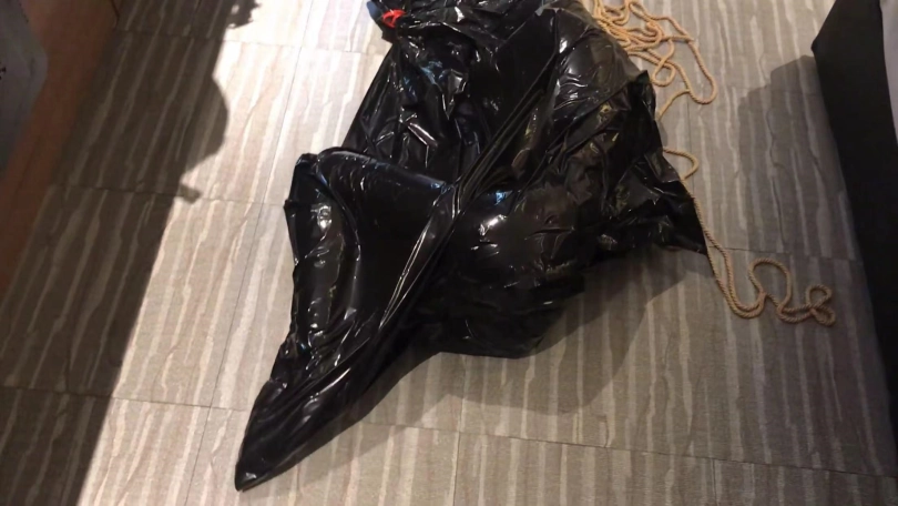 4、新道具---黑色塑料袋和真空泵 黑色塑料袋装入,真空压缩状态挣扎挠痒玩弄,小周很享受这种刺激。这段拍完以后竟然问我这就完事儿了吗还没玩够。。。