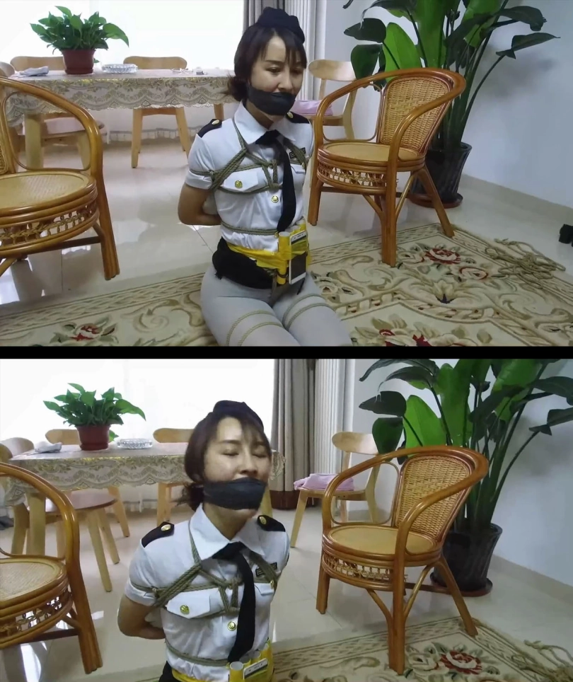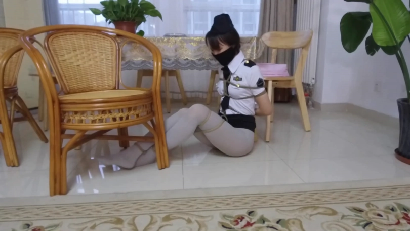 【逍遥】《蝴蝶效应02》美丽警服美女!丝袜美腿折叠分开捆绑,丝袜塞口+口球+口罩,身上捆绑定时炸弹!!