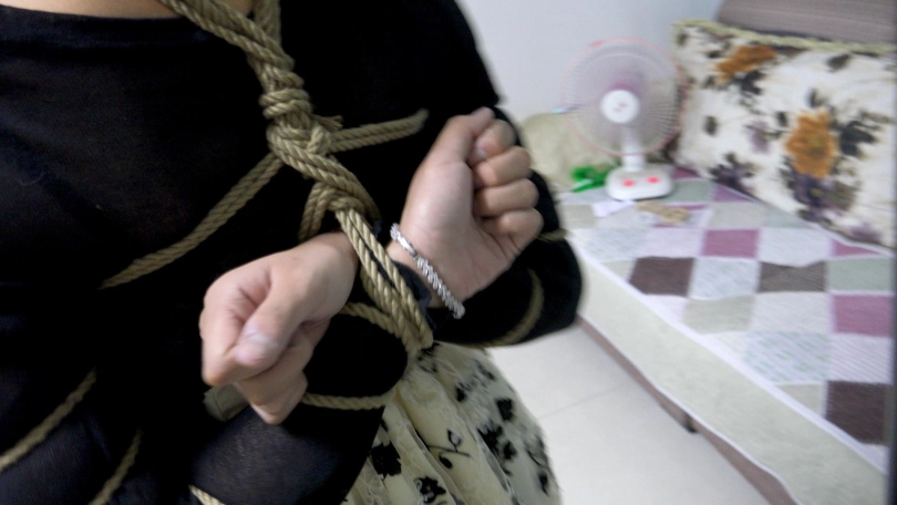 【子衿】菲菲极限五花盘腿放置,挠痒搜身口球口水直流,一个人放置30分钟左右最后崩溃大叫