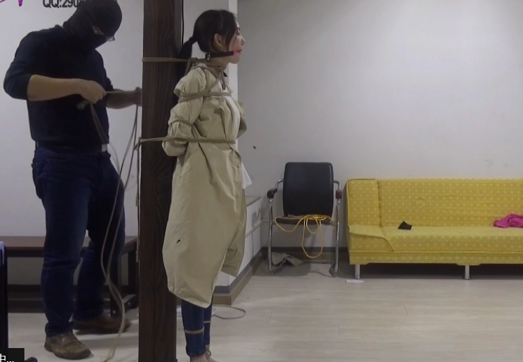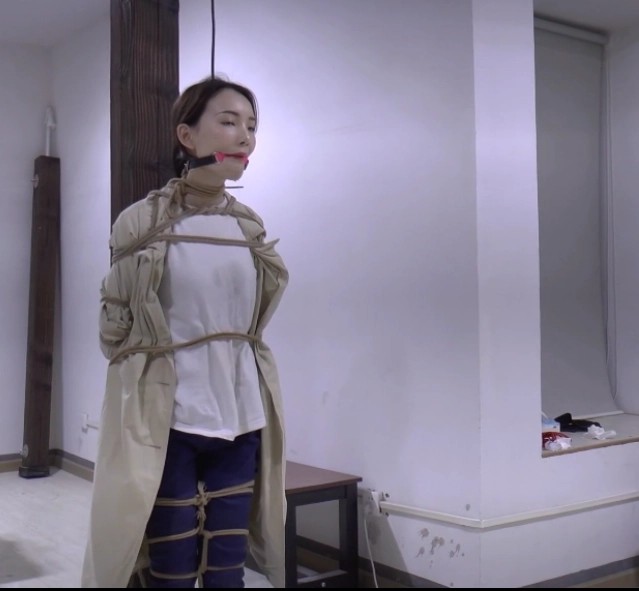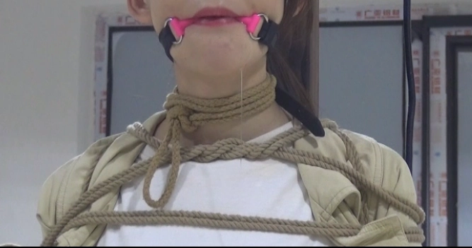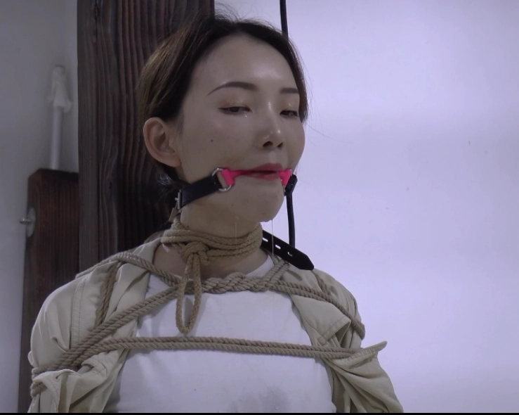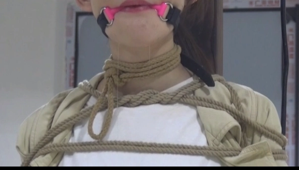 接着罪犯将搜查官全身捆绑在柱子上,带上口球,搜查官挣扎不能,只能无助的看着口水慢慢流出口水,顺着下巴留下,在身前流下两条长长的口水印。