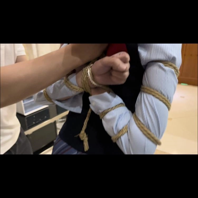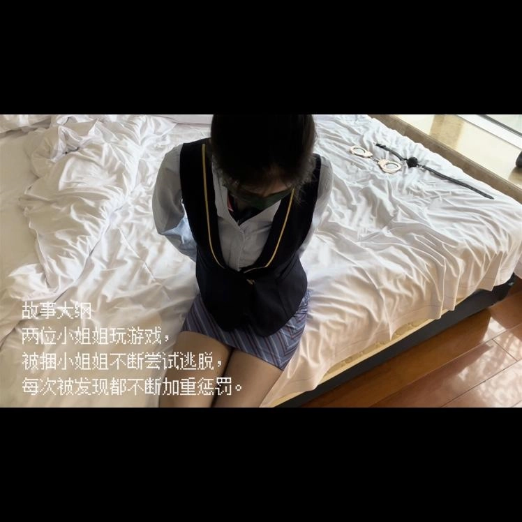 两位小姐姐玩游戏,其中一位被捆了,不断试图逃脱,每次被发现都加重惩罚,手铐脚镣,再到口球堵嘴,还拿杯子装口水,亮点挺多的。最后再来个扎带,五花,捆脚后强迫行走(这个环节另一位小姐姐没这么大力气,就由我客串一下啦),满足我们制服和丝袜控。