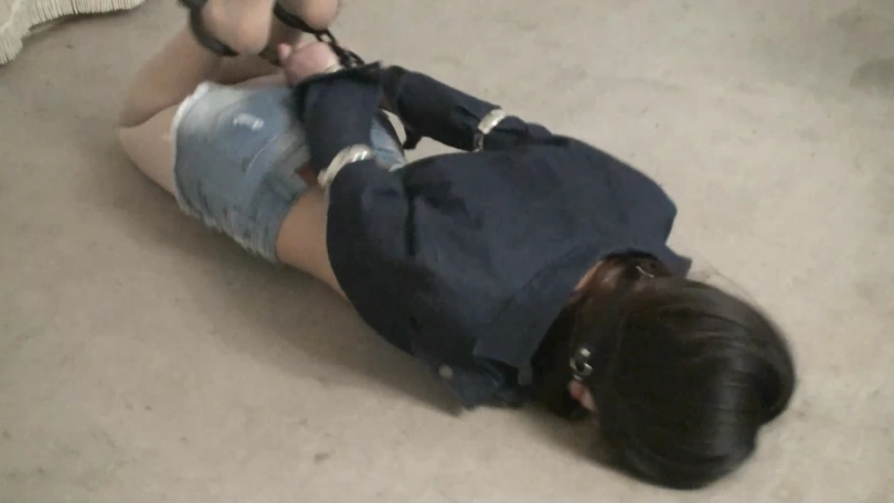 小A在不断地挣扎,并且是不是大骂大骂导演,致使导演非常生气导演于是便把小A绑成驷马,离开,让小A自己独自挣扎过了一会,男人回来,小A只能假装屈服,已找到逃脱的方法