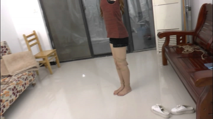 揭开雯莉的镣铐,开始捆绑雯莉的脚。