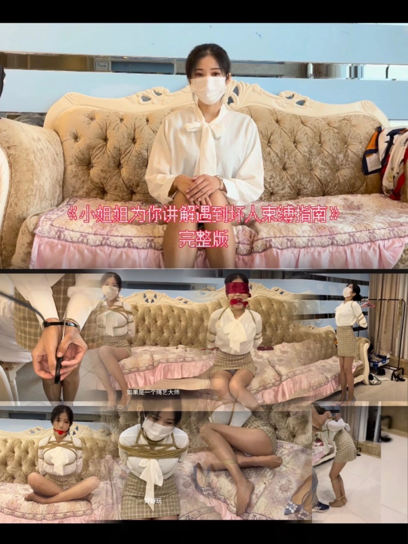 小姐姐甜美原声为你讲解遇到束缚自救方法,有扎带自救,手铐脚镣放弃挣扎,五花大绑挣扎,后手观音,超美日式,桃缚等精彩绳艺,堵嘴,丝袜套头约束绳子行走等超级丰富元素,甜美声音,精彩演出。最后还赠送5分钟精彩采访环节,小姐姐介绍深入绳艺圈的历程,束缚感受和最喜欢花式以及最讨厌花式等一系列问题。