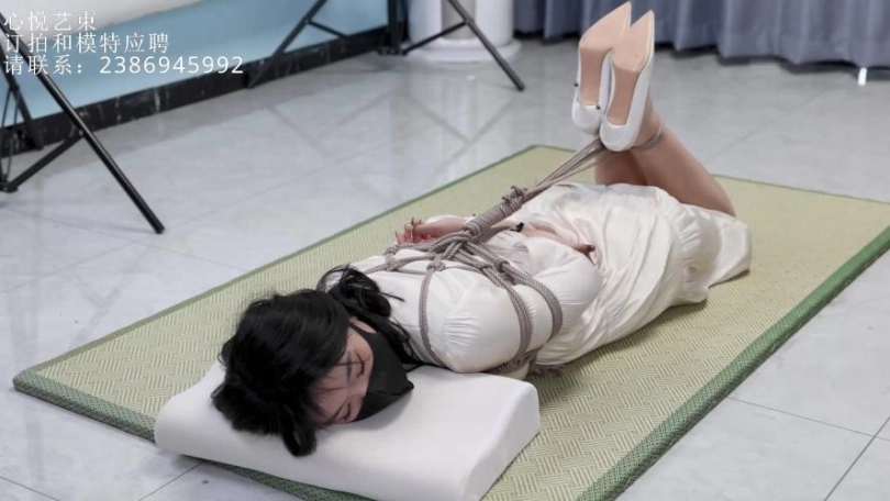 【心悦艺束】性感紫萱的肉丝长裙驷马挣扎,主要是妹子过来体验下不同的拘束情况。
