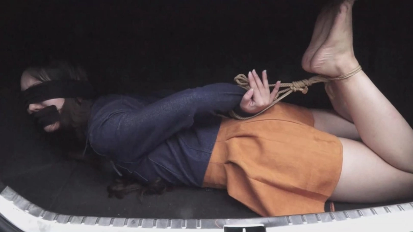 男子将徐丽手脚捆绑后也抱进了后备箱,这下小张可有的作伴了。