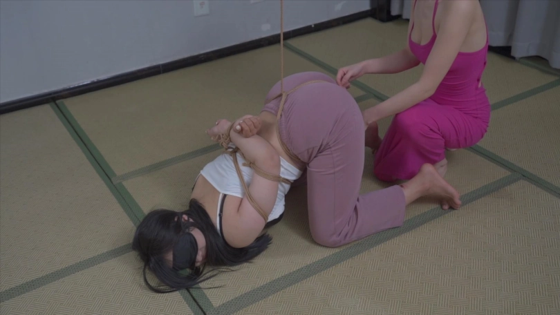 捆绑过程+趁机摸摸揉揉,鼻勾破坏颜值,股绳拉扯