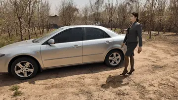 女经理边打电话边上车,没想到车上遭已经藏了一个歹徒,歹徒趁女经理发动车的时候用毛巾捂晕她,脱掉的衣服,开始玩弄,最后把她拷在车的方向盘上