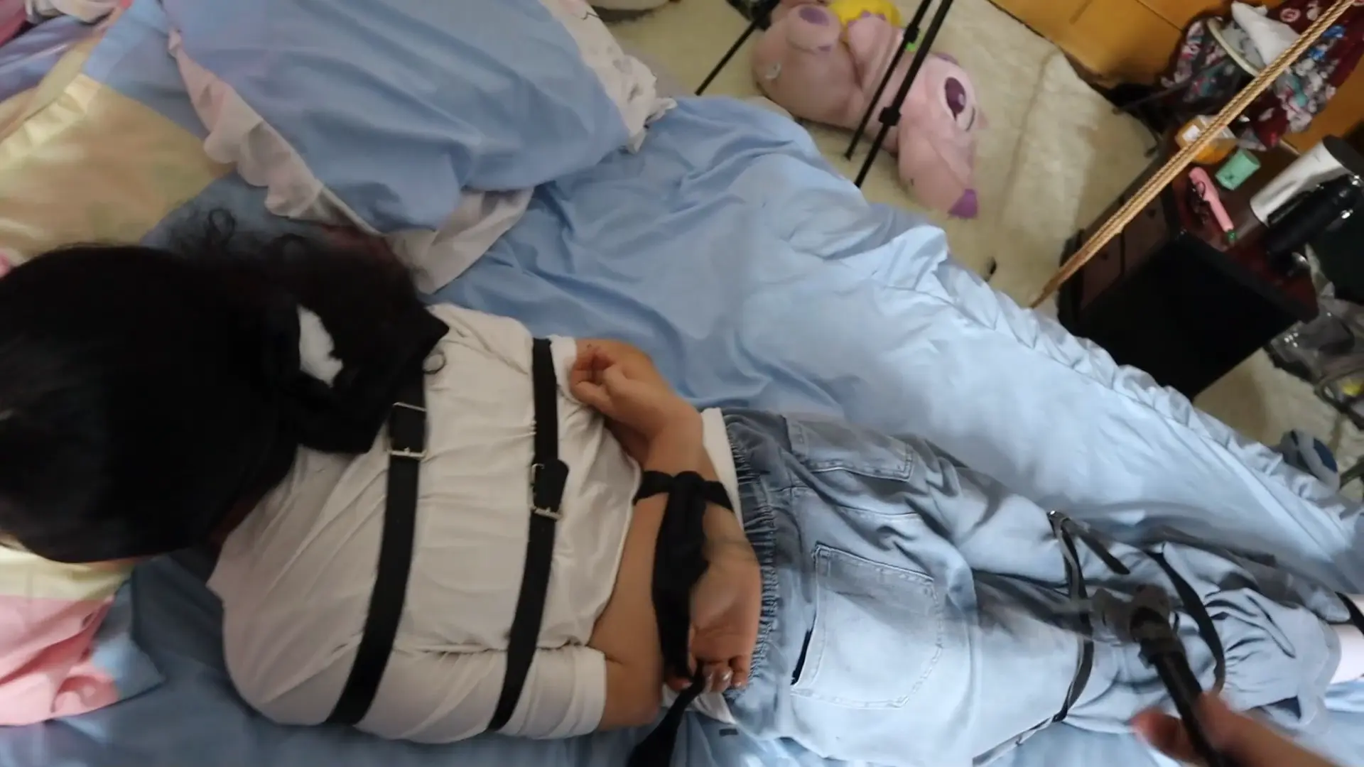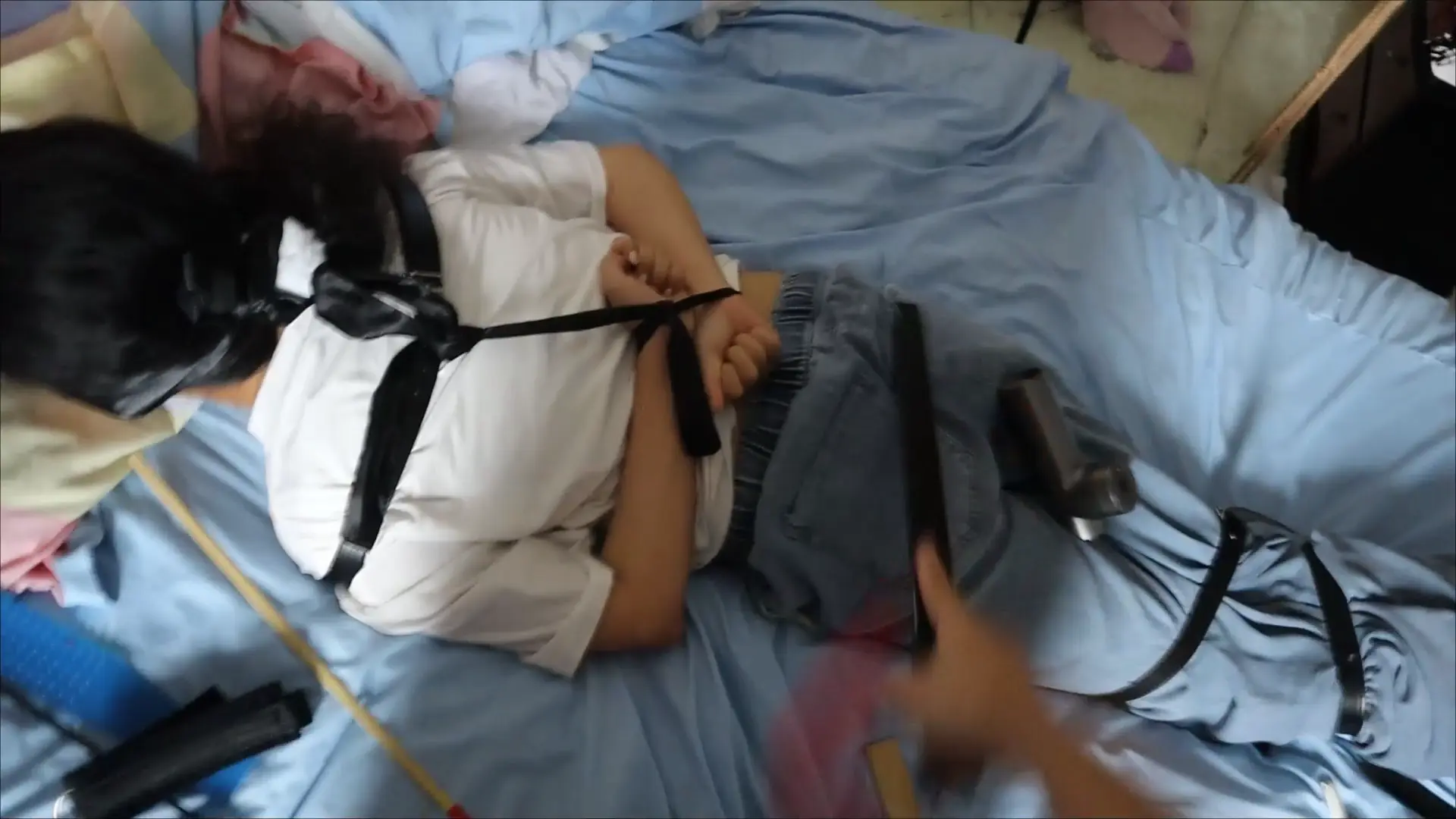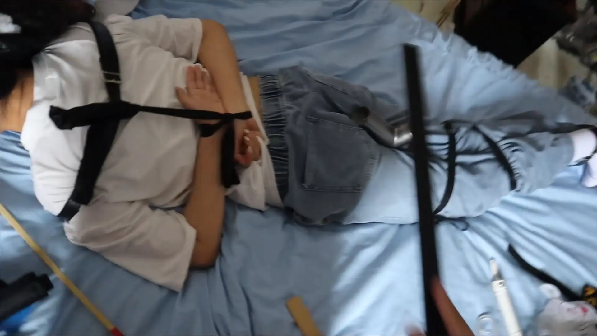 【荷仙少女】线下真实调教高挑白袜牛仔裤素人女孩小心翼翼来接受男主调教,一进门就见到几十种鞭子sp害怕又兴奋,皮带绑好身体手脚,纯记录双视,鞭打到后面痛苦挣扎直接大声哭泣喊道便报数边喊谢谢主人