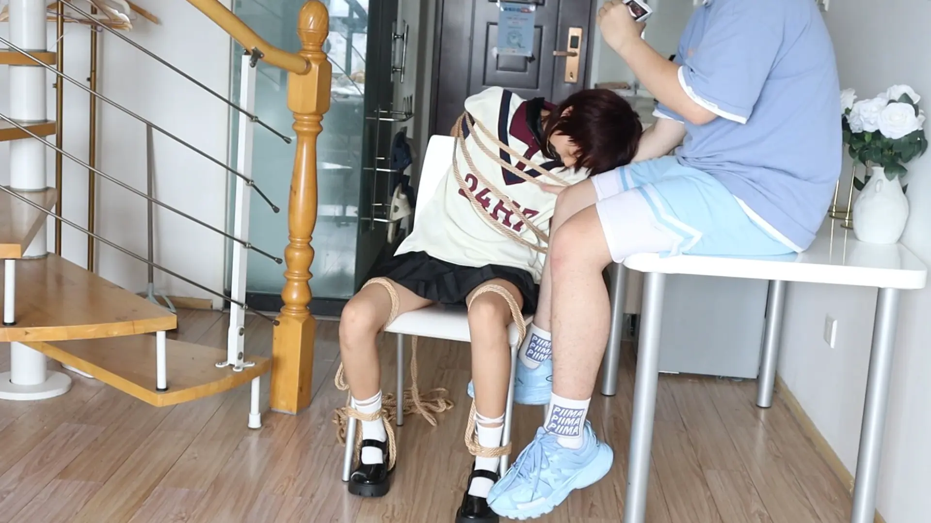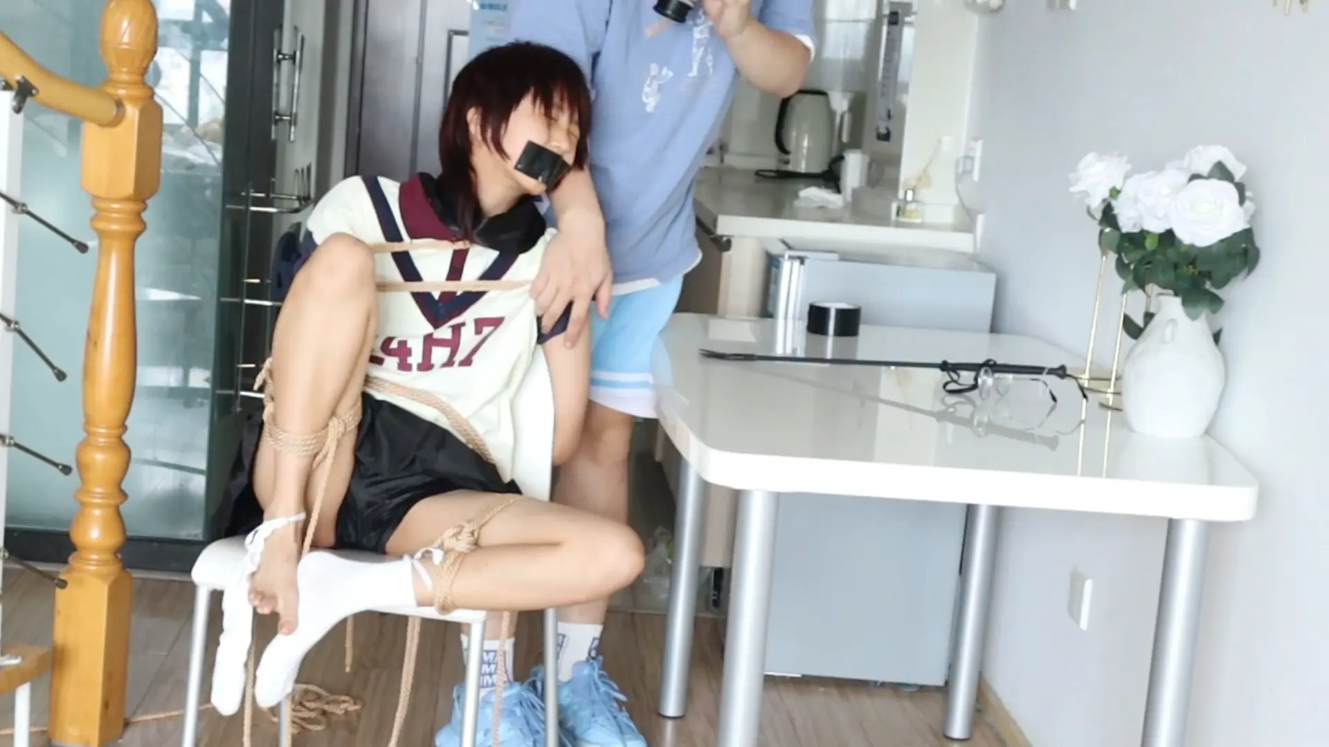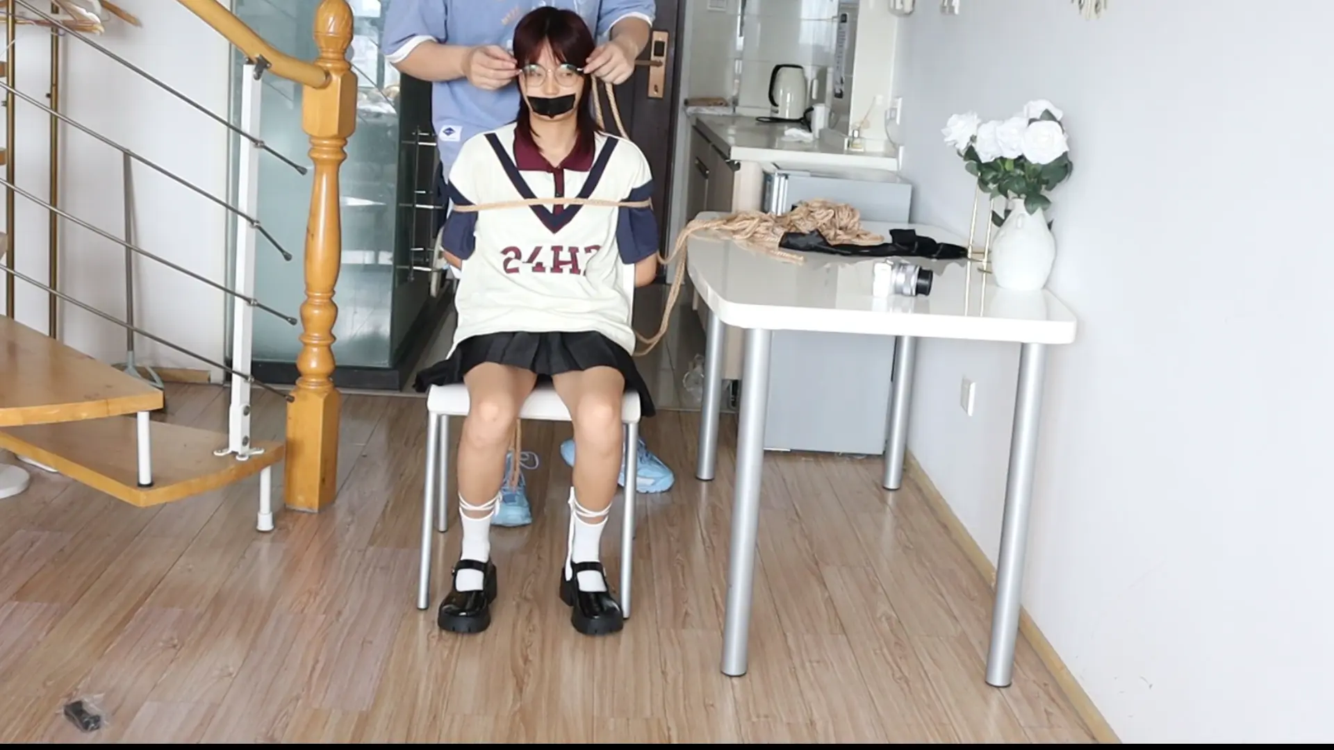 眼镜才是本体!!【荷仙少女】眼镜才是小B的本体,露脸萝莉椅子缚和M绑,羞辱挠遍全身的部位,一开始脸呆呆的害羞不敢挣扎的叫喊,直到安抚后才开始发挥本性呜咽,短发萝莉萌萌的眼睛因为tk敏感直接扭曲成一条缝