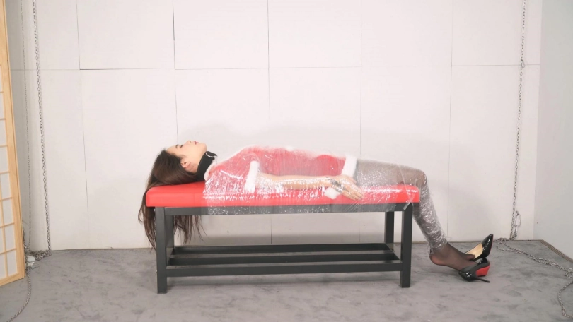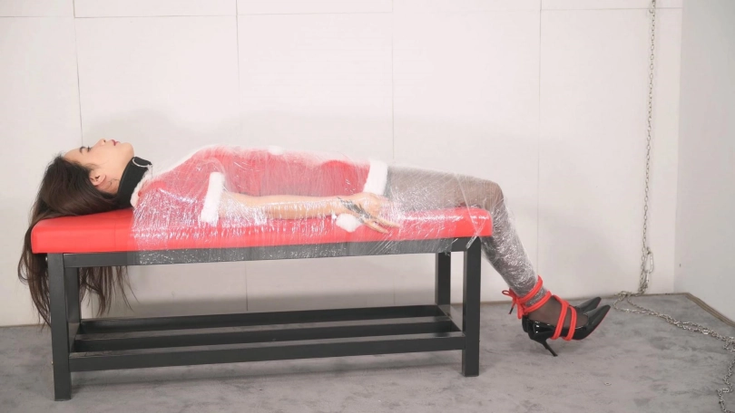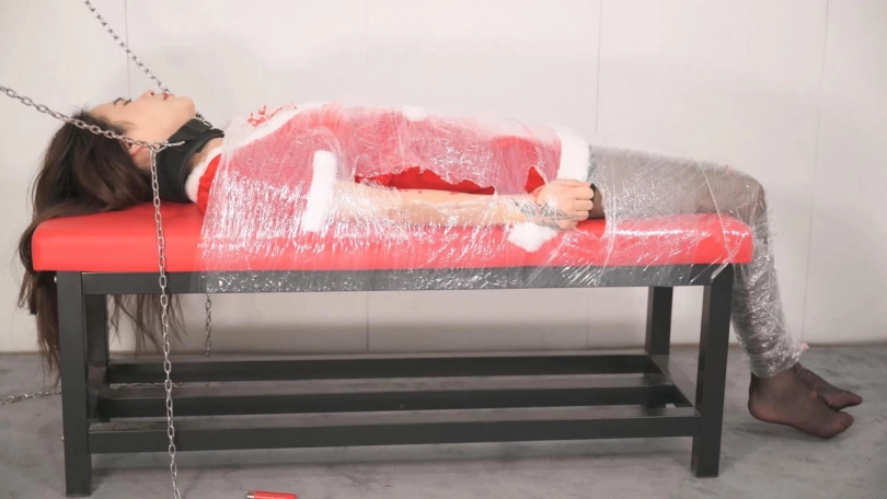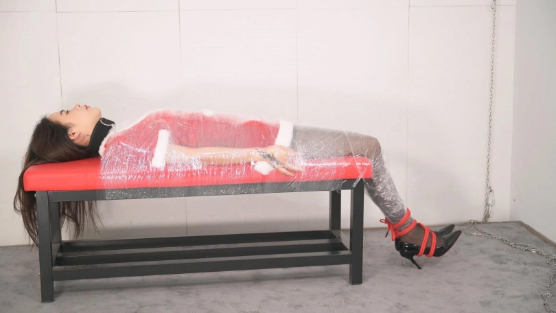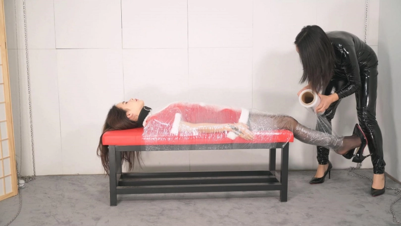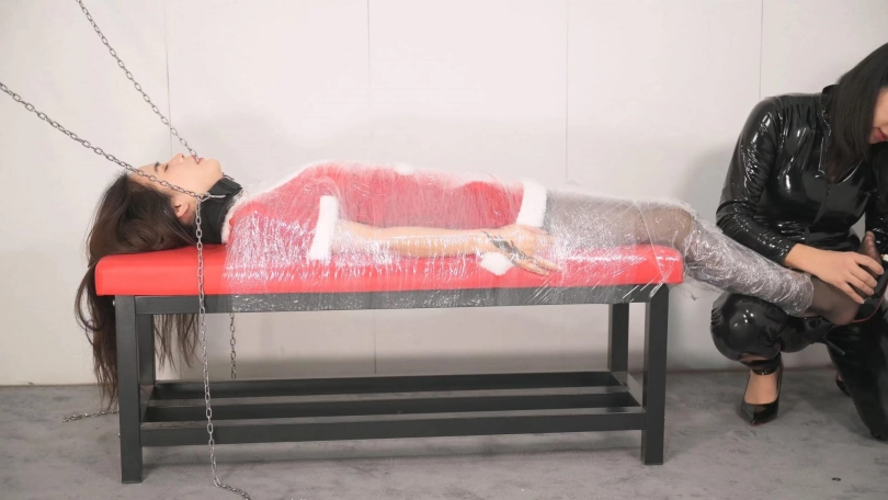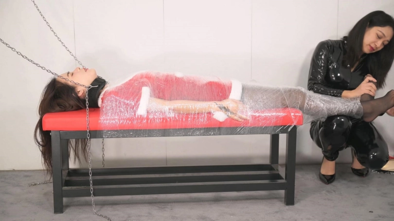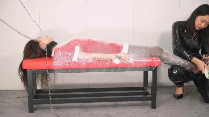 【撒琅制造】女捆女之言妍平安夜被女王沐小雨木乃伊包裹调玩--圣诞装、黑丝、高跟、百合、爱抚、刺轮、电击、滴蜡