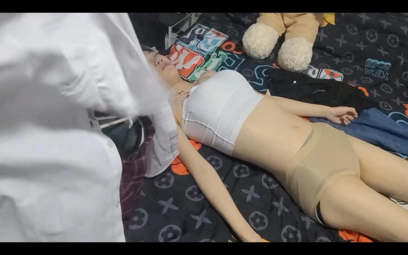 一开始,男主作为一个小偷偷偷摸进女主家,给女主杯子里面的水加入准备好的迷药。女主坐在沙发上玩着手机,过了一会感觉口渴就喝了水。渐渐的,女主的意识越来越模糊,最后昏了过去。男主躲在角落看见了便出来了。他推了推女主发现没有反应,然后摸了摸她的脉搏,翻开她的眼皮,发现她昏迷了, 并且要过很长时间才能醒来,便放下心来。男主想要欣赏睡美人的美丽,便把女主抱到床上。男主看见眼前昏迷不醒的性感女孩,顿时兴高采烈。男主脱下女主的衣服,拿出准备好的JK短裙和凉鞋给女主换装,他抚摸着女孩的双手,玩弄着她那白嫩的手指(镜头拉进拍女主的手),然后抚摸着女孩的双腿,并且啧啧赞叹。然后,男主又拍打着女主的脸,发现女孩毫无反应。男主又翻开女主的双眼,发现她目光呆滞,显然已经陷入了深深的沉睡之中。(镜头贴近女主的脸)然后男主把女主摆成睡美人姿势,说到:“我先看看你家里有没有什么值钱的东西,过一会再陪你玩,小美人。”然后男主离开,镜头贴近女主给女主特写,两分钟左右。