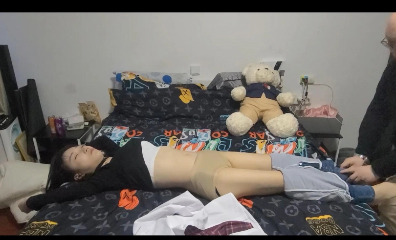 男主回来,继续把玩女主。他把女主拖到沙发上,把她搂到自己的怀里,感受着她柔软而又温暖的身体。男主摇晃着女主的身体,摆弄着她的手臂,但是女主还是一点反应都没有。男主让女主躺倒在沙发上,又掀开女主的眼皮,看见她还是目光呆滞,眼神涣散。男主说:“接下来玩点什么比较有意思呢?”男主拽着女主的手把她拉起来玩弄并合影,摆弄了一会女主的身体后满意离开,留下女主继续昏迷不醒。