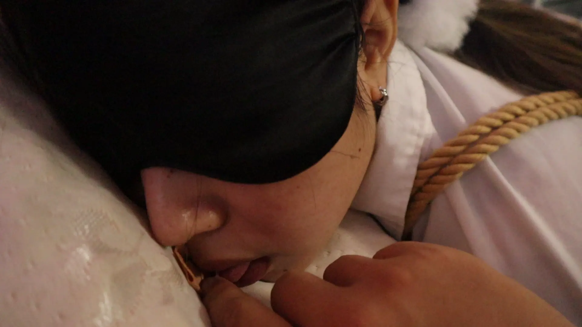 【荷仙少女】绿JK白丝少女奴,拉动股绳嗯嗯的叫,驷马绑,指令+舔+鞭打+小玩具振 股绳慢慢拉动 胶带封嘴TK挣扎,边痛苦求饶边爽的呻吟始终没停下来
