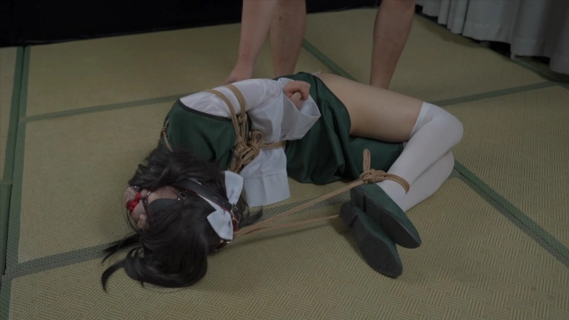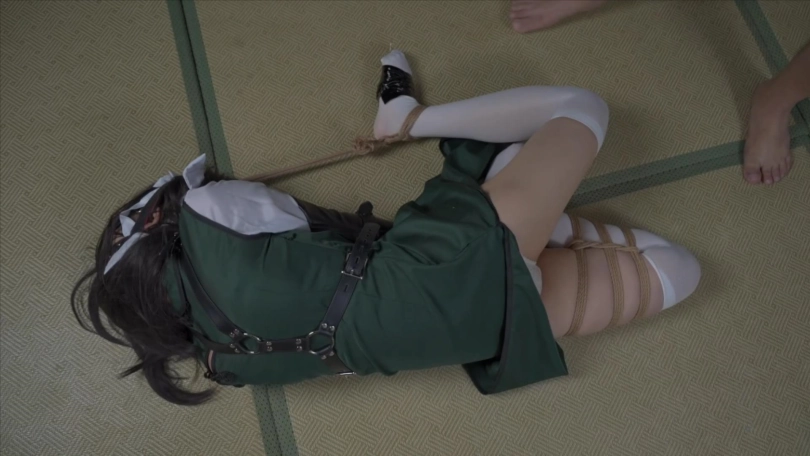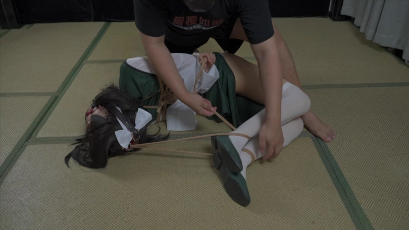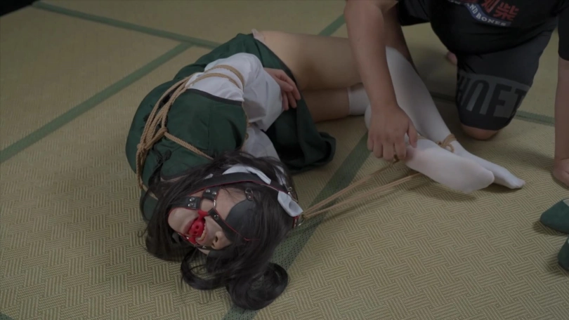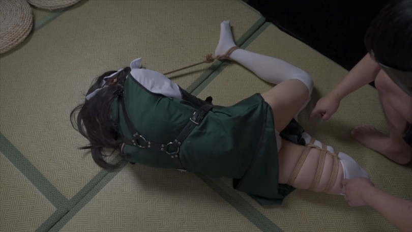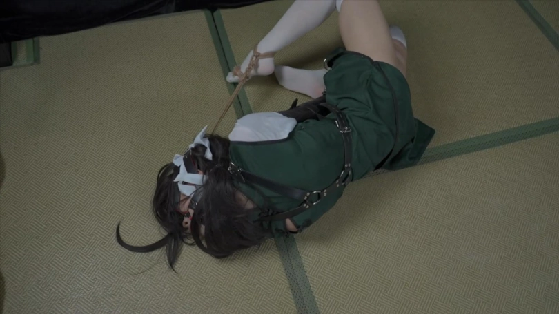 下半场,单手套+折腿缚,马具口塞链接自由的脚