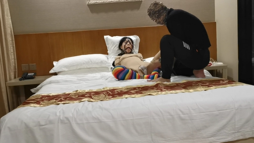 桃子练瑜伽被袭击,捆绑堵嘴,分腿捆绑,振动棒强制高潮。。。