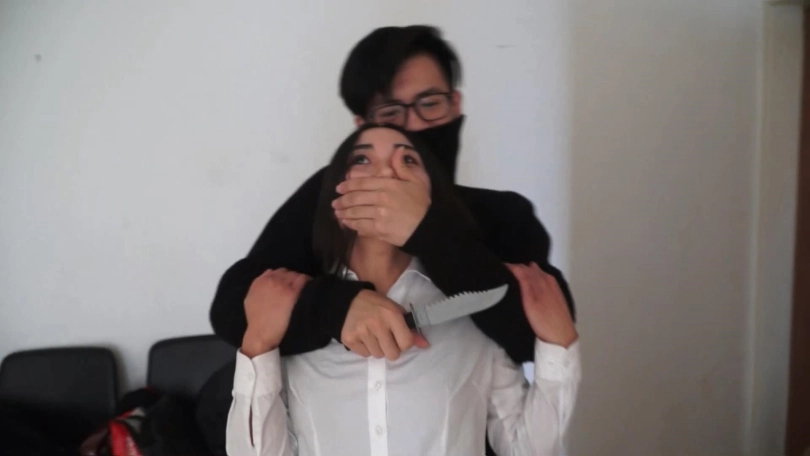 外企白领徐敏(董倩 饰)下班后回家,不料被劫匪老狼尾随。老狼借机以送快递名义骗董倩开门,开门后面露凶相将其劫持,并令其找出家中的丝袜。徐敏保持冷静与劫匪周旋,主动将双手捆绑在身前,并利用劫匪出门取钱的机会挣脱。不料劫匪因密码不对返回,此事徐敏的朋友大学生叶倩(依然 饰)碰巧来访,劫匪将其与徐敏一并捆绑在了家中,她们的命运如何?