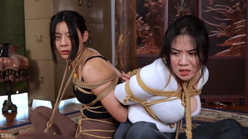 被激怒的老板狠狠的给了两人几拳,并给她们戴上了口球,用脚不停的踩踏两人,用手不停的抽打两人泄愤。接着,老板将凉兮双膝捆绑,将李然被双腿拘束站立吊缚,开始狠狠的抽打两人的屁股和身体,不堪折磨的李然晕了过去,老板想趁此机会非礼两人,于是掐晕了奋力反抗的凉兮,刚准备动手时,老板的电话响起,电话那边说事情败露,让他赶紧逃走,慌张的老板只好丢下昏迷的两人跑路了。最终,凉兮和李然被解救。。。